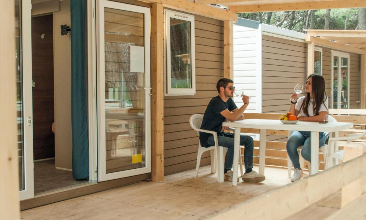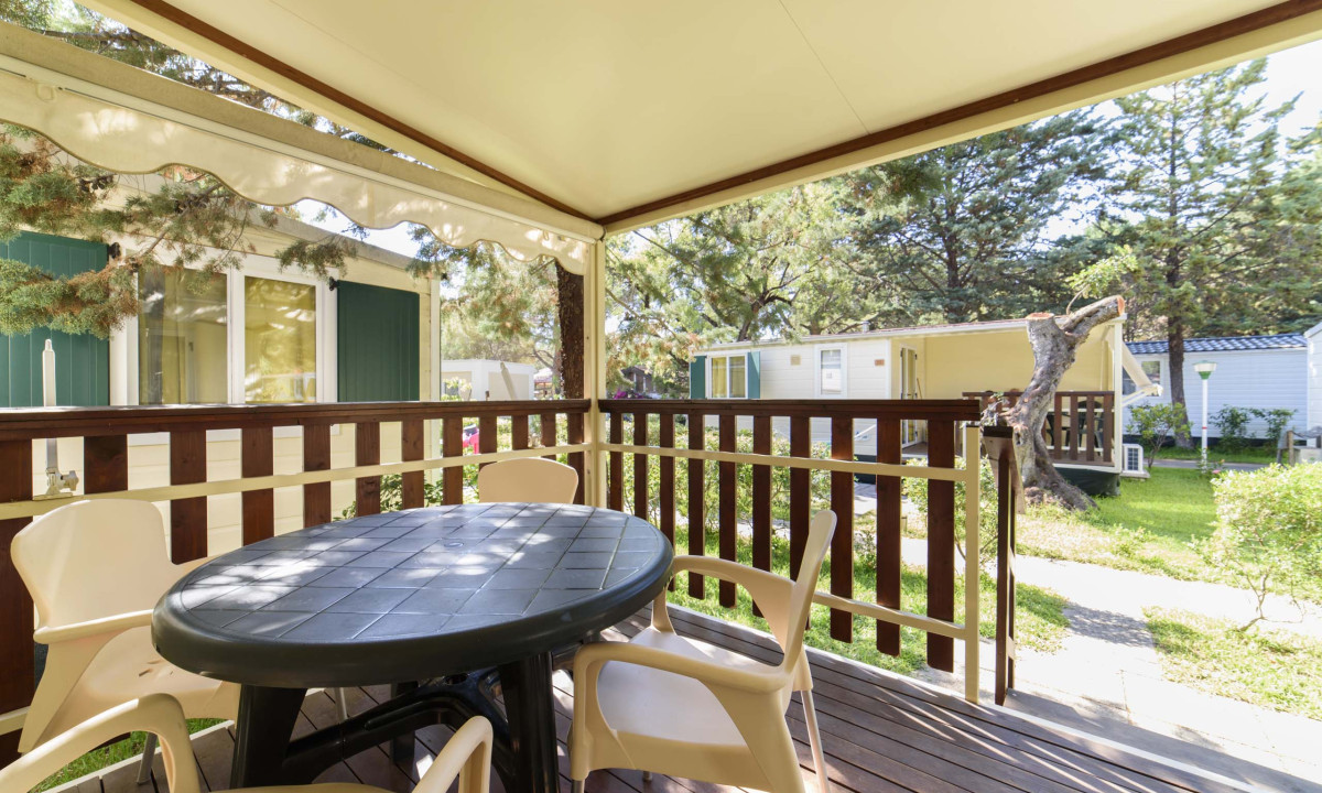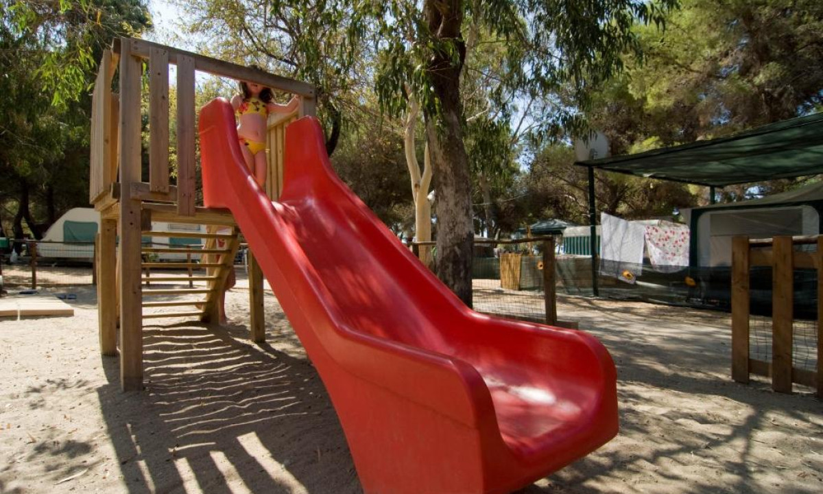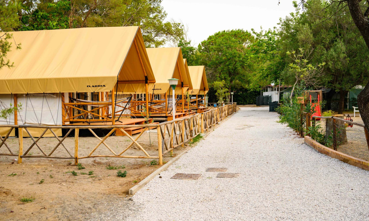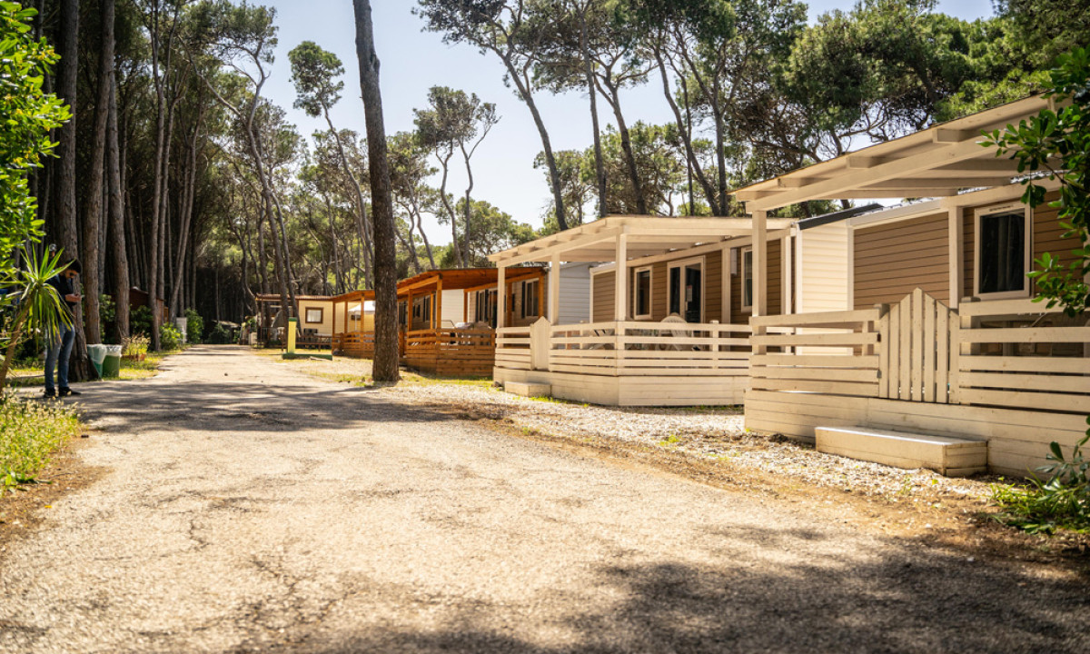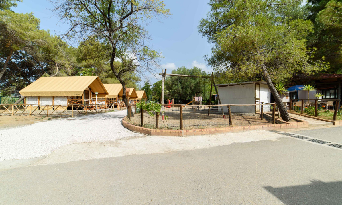 Camping tranquilo y sombreado bajo los pinos