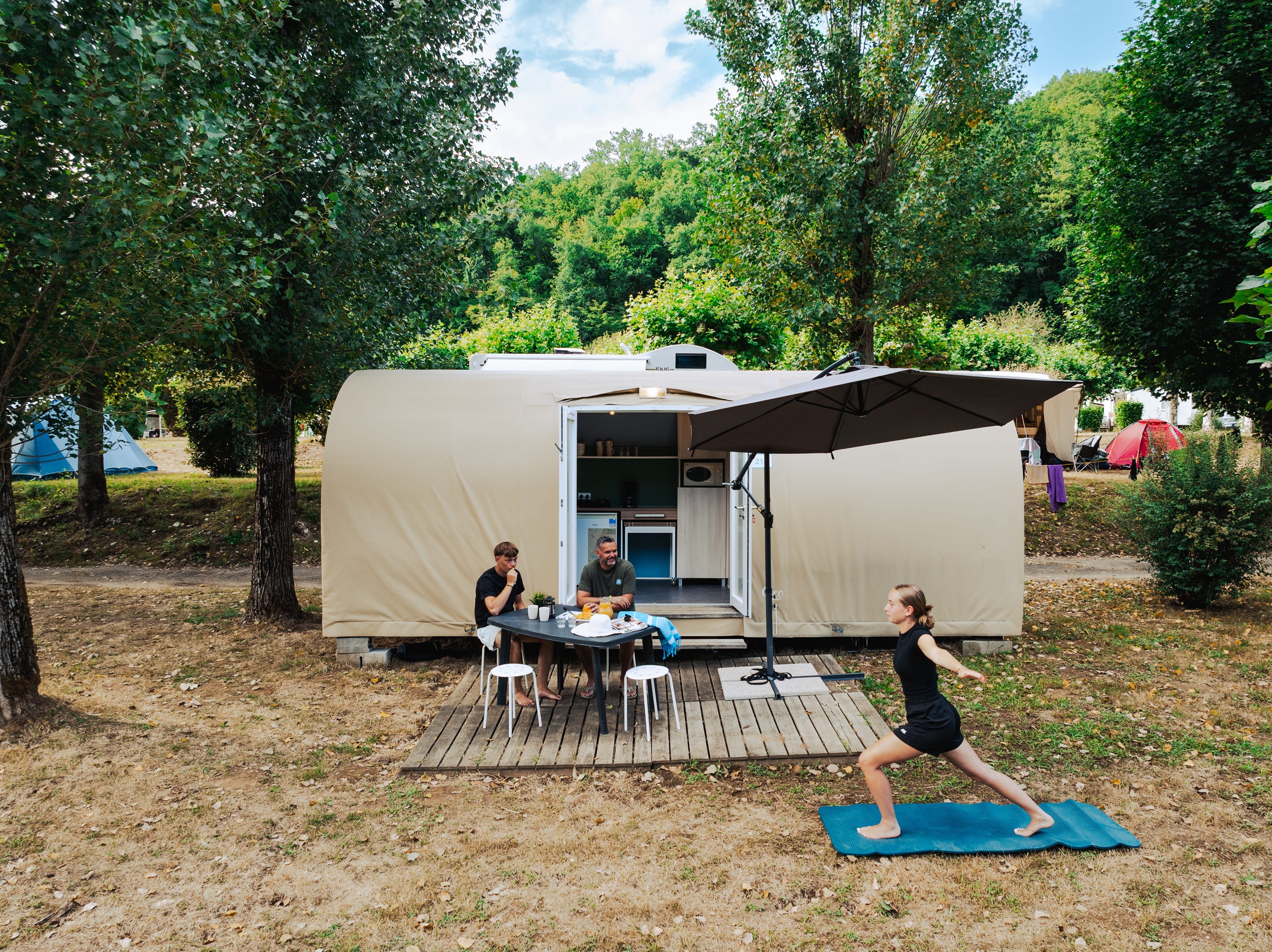 Mit dem Ziel, Ihnen die Natur näher zu bringen, sind die Unterkünfte auf dem Campingplatz in ruhigen, privaten und üppig begrünten Stellplätzen eingebettet und verfügen über geräumige und helle Wohnbereiche. Genießen Sie die Freiheit eines Urlaubs in der Natur, ohne auf Komfort verzichten zu müssen.