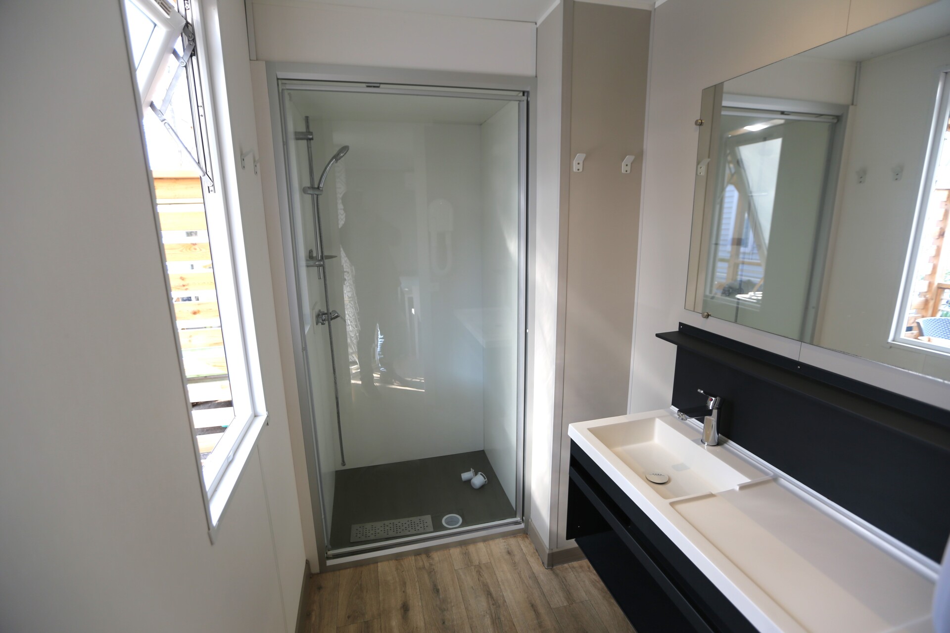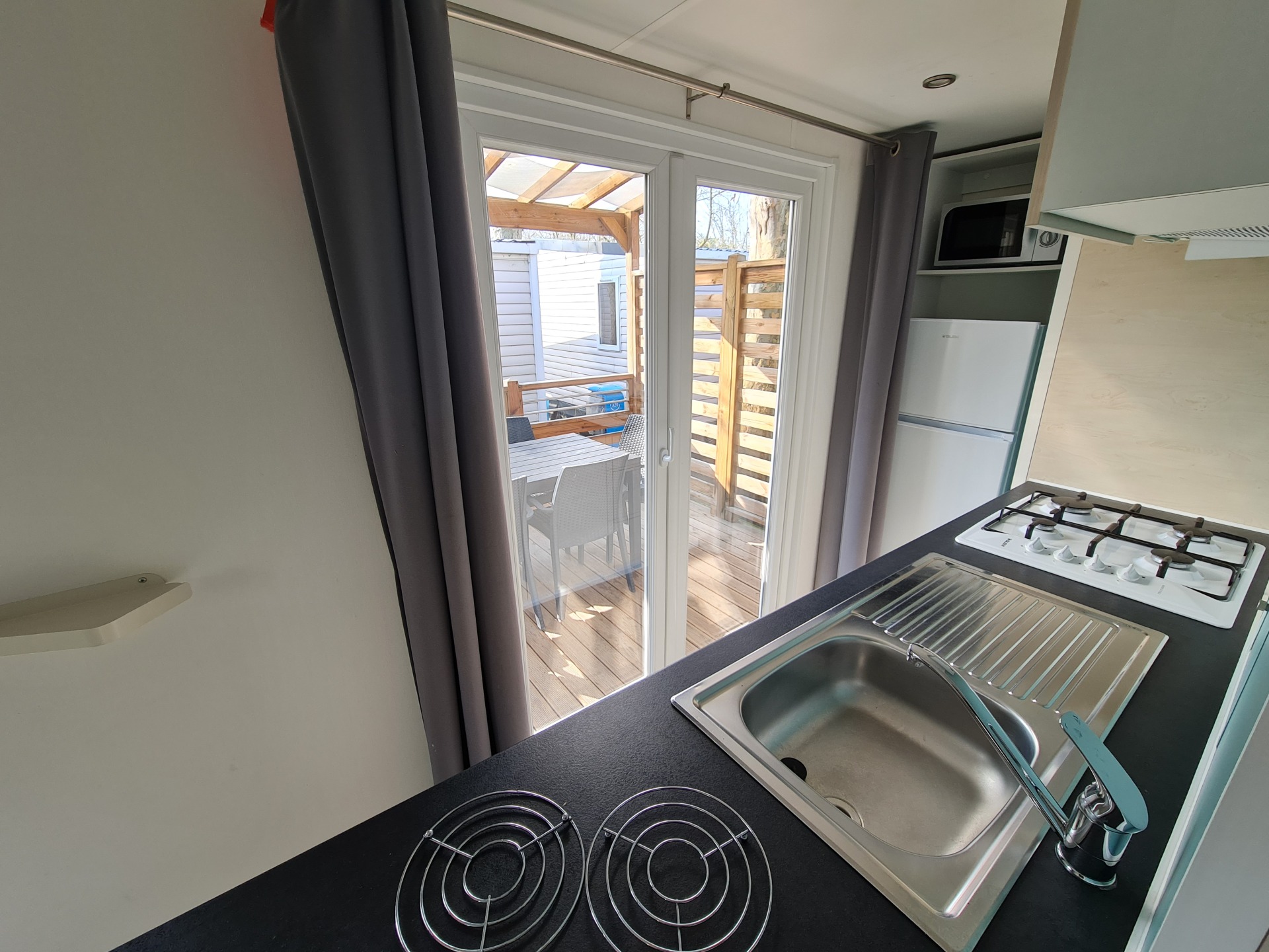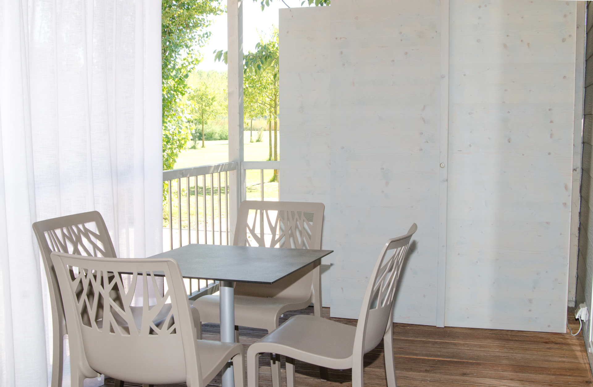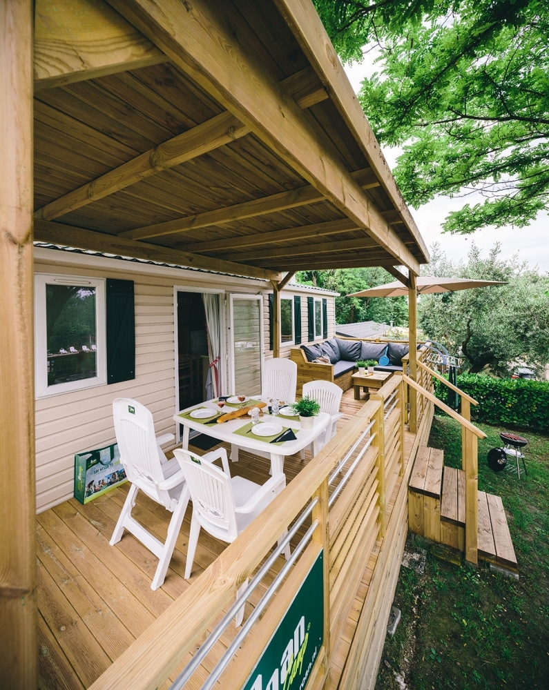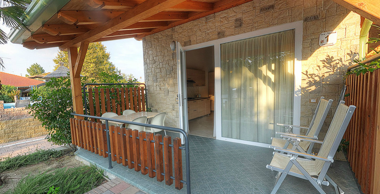 - Holzterrasse, mit Markise
