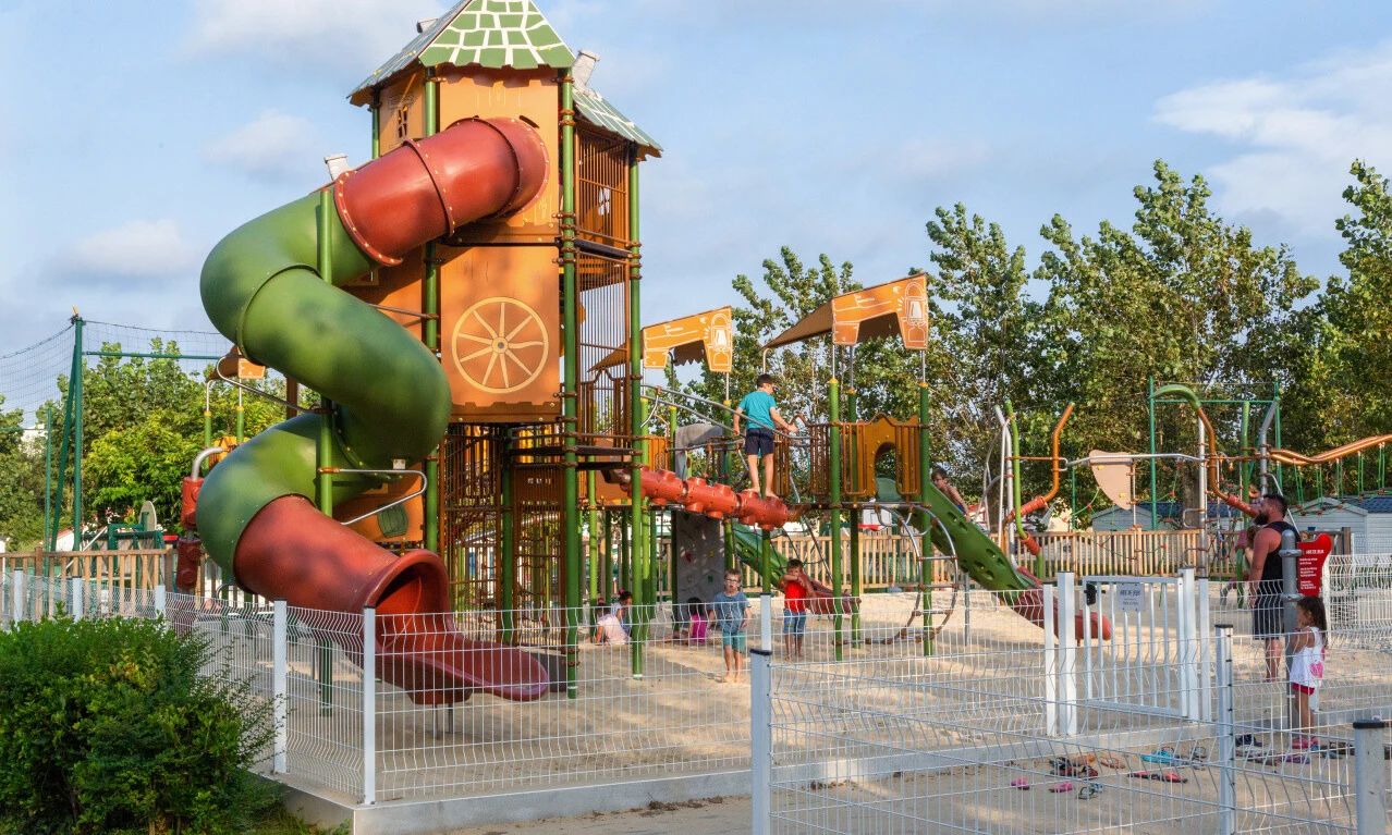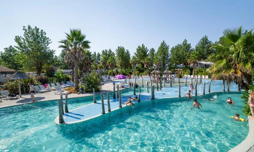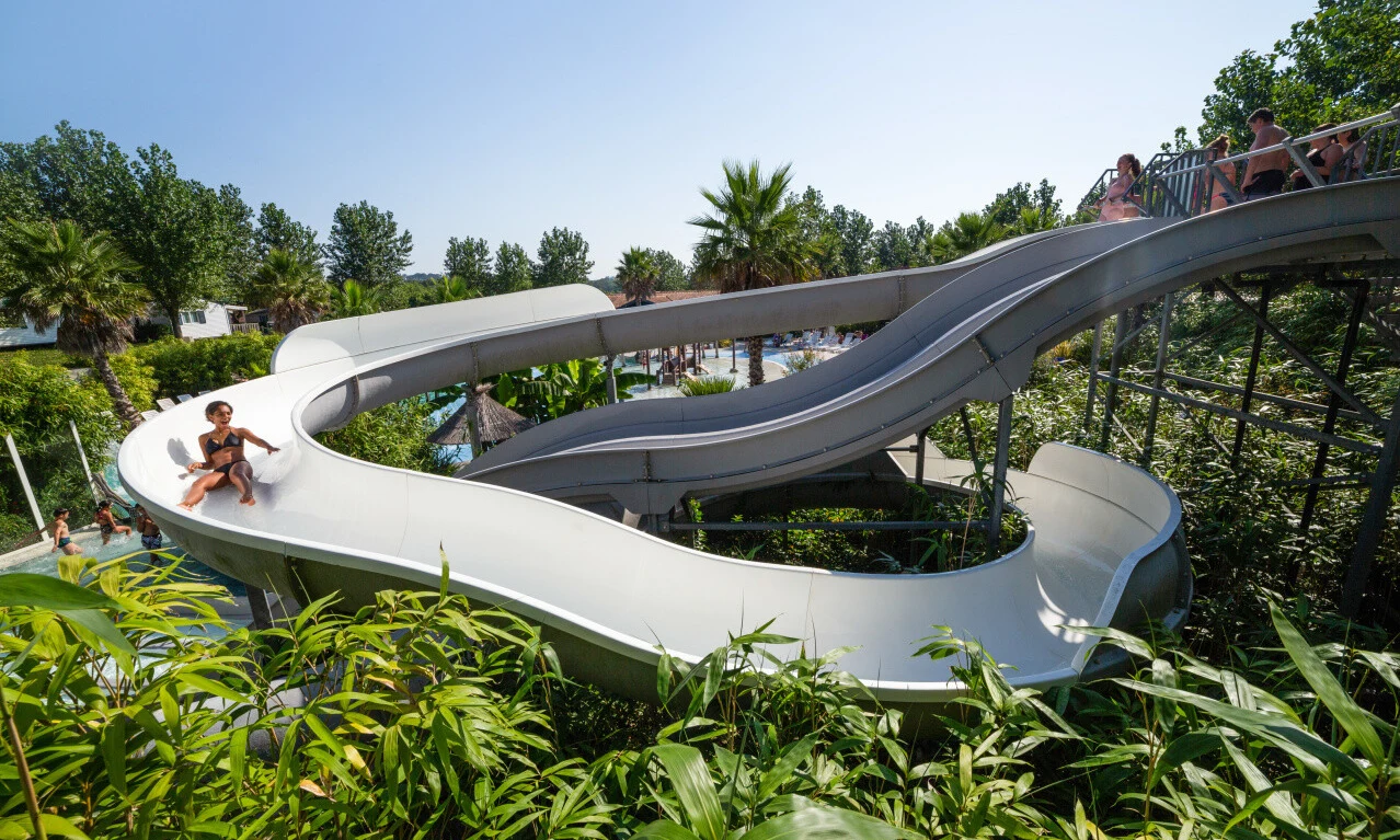 Der Aquakomplex des Campingplatzes ist grossartig und bietet zwei beheizte Pools, ein beheiztes Planschbecken für die Kleinsten, verschiedene Wasserrutschen, einen Spielplatz und einen Bereich zum freien Schwimmen. Die Sonnenterrasse bietet Platz für über 100 Liegestühle und zeichnet sich durch ihr tropisches Ambiente und ihr grünes Blattwerk aus. Für Schwimmanfänger werden Schwimmkurse angeboten und aktive Camper können den ganzen Tag über Wassergymnastik betreiben.