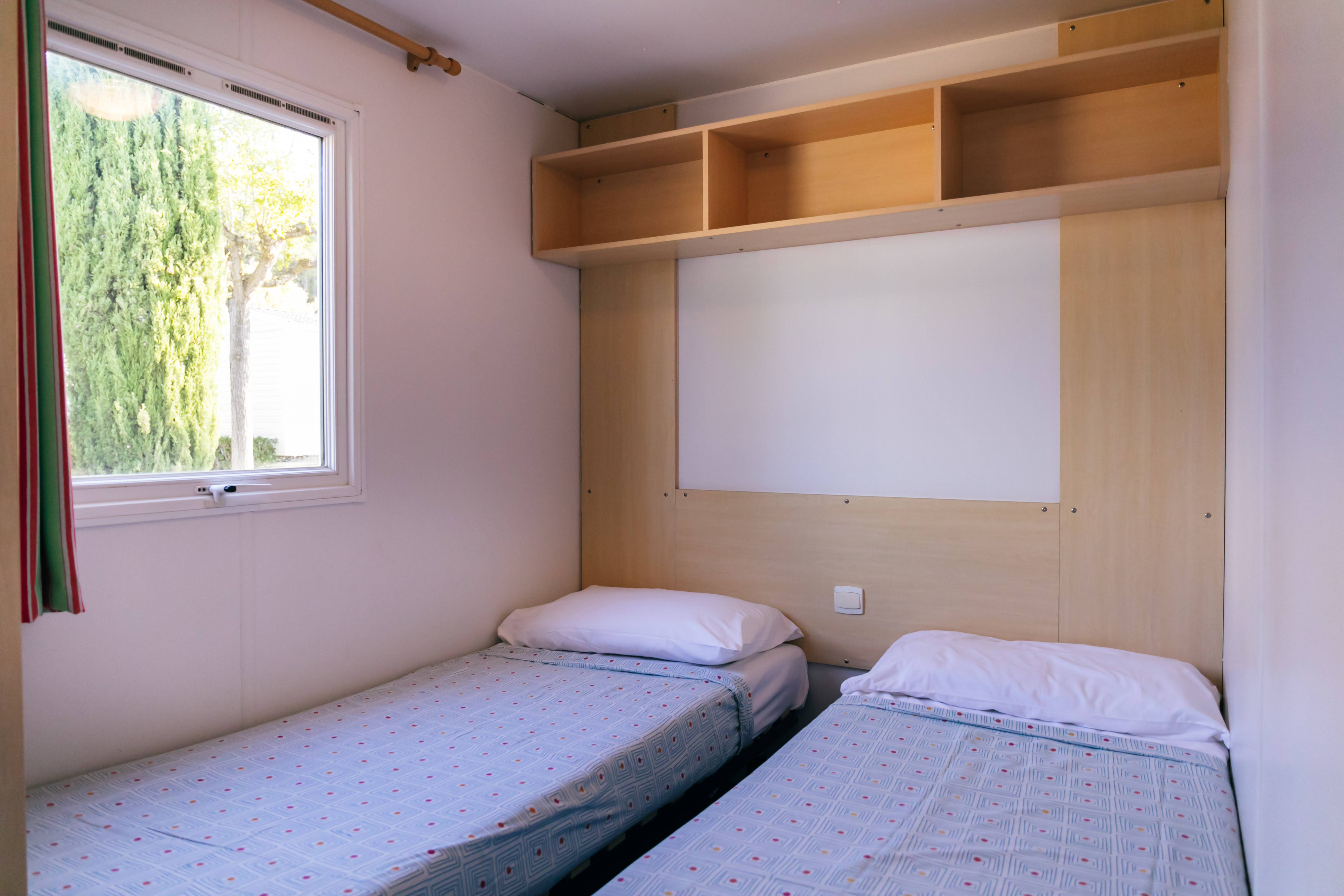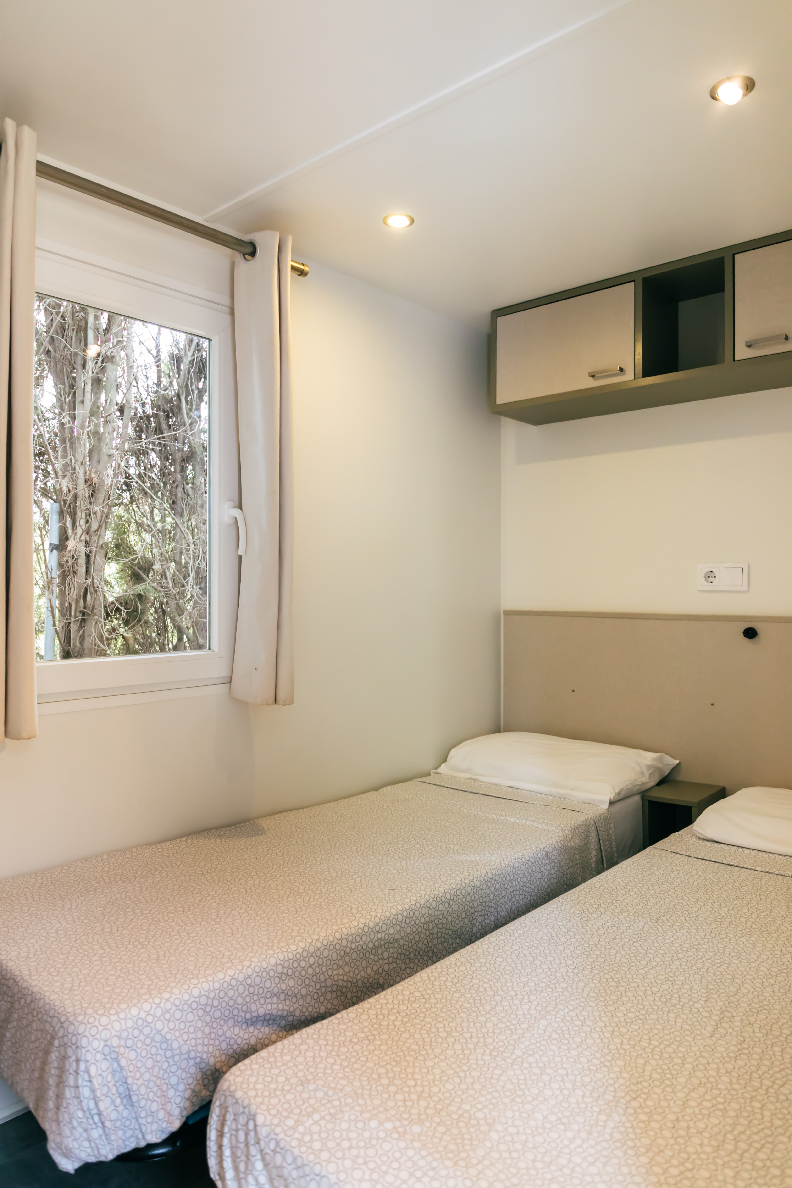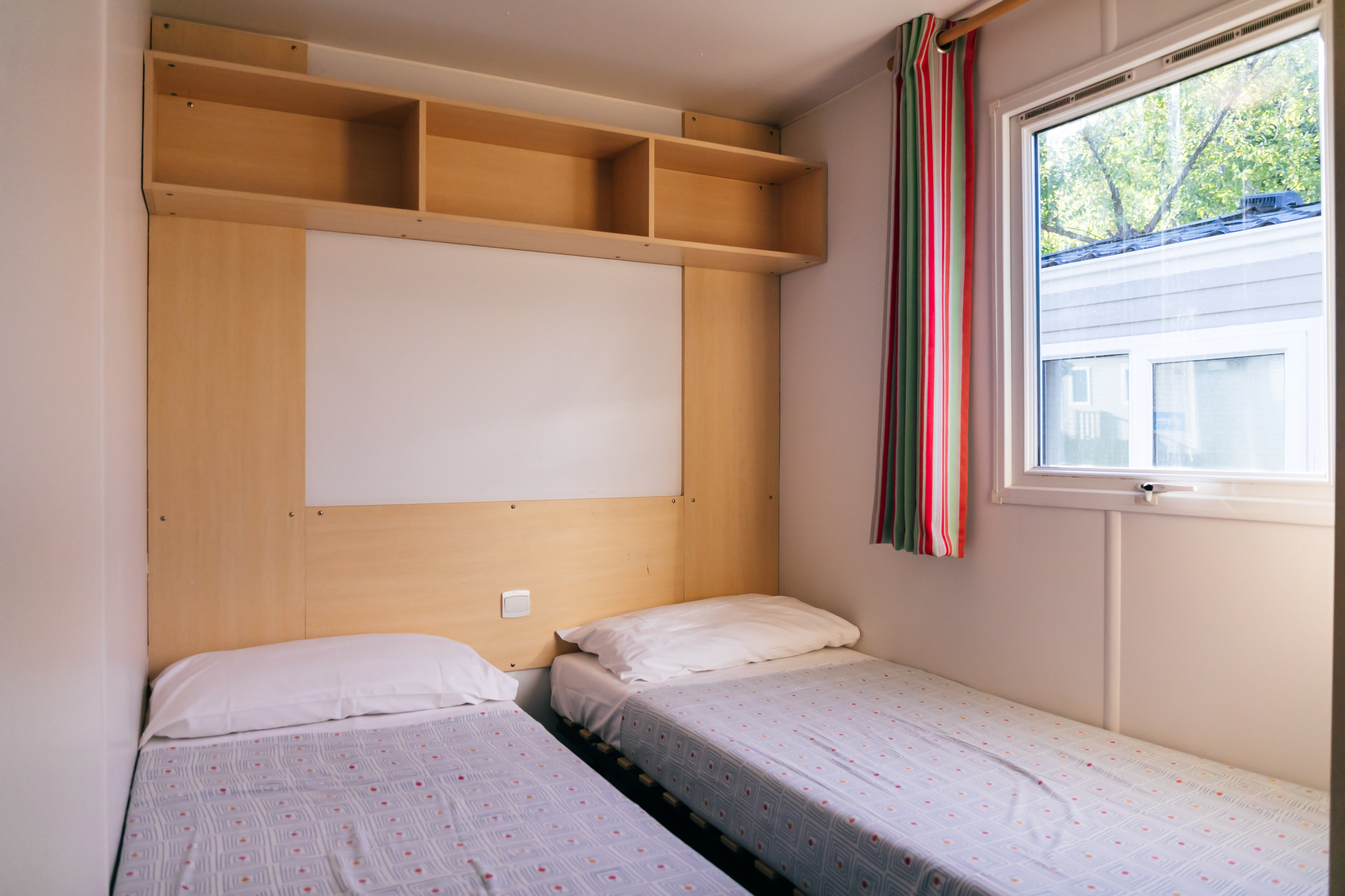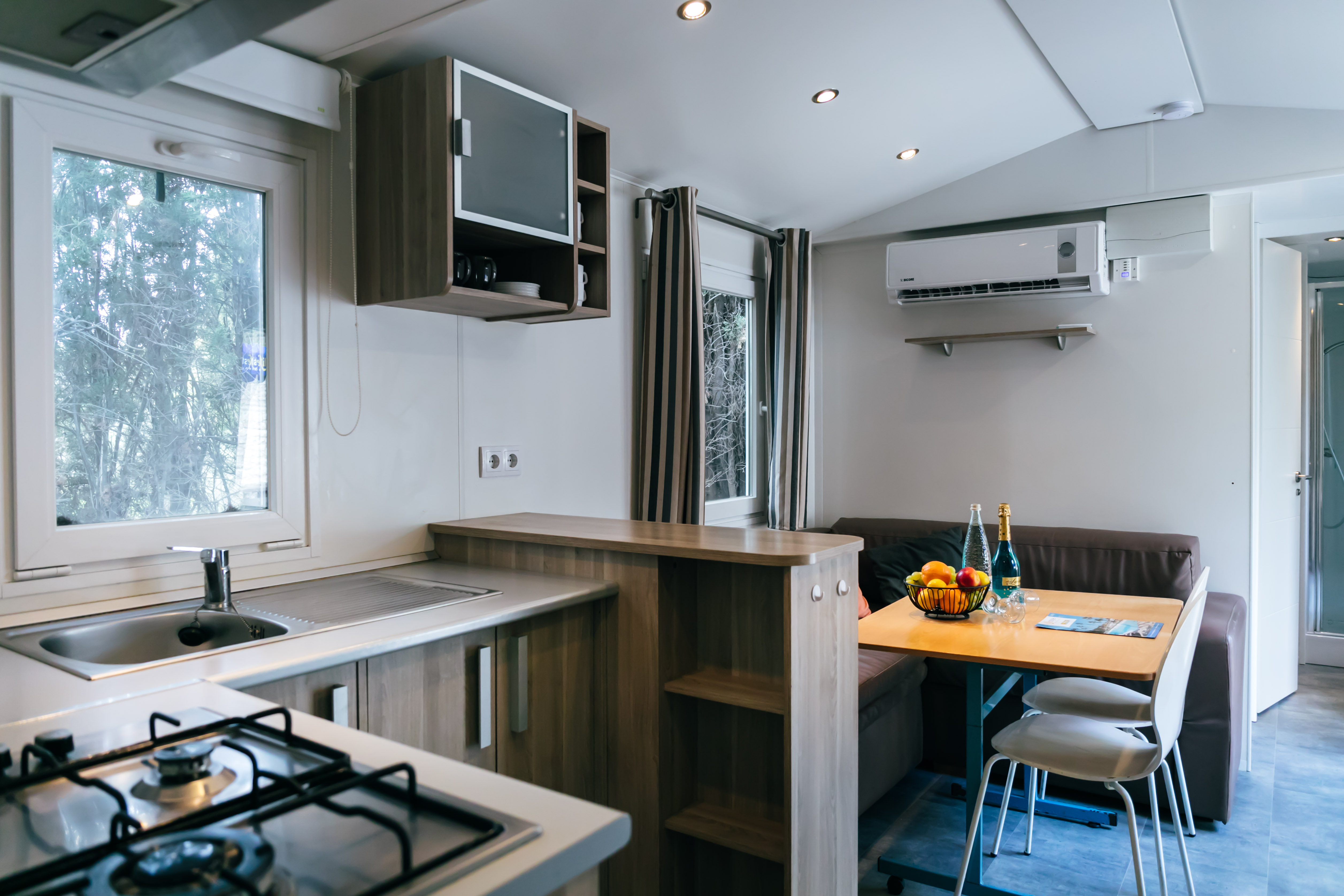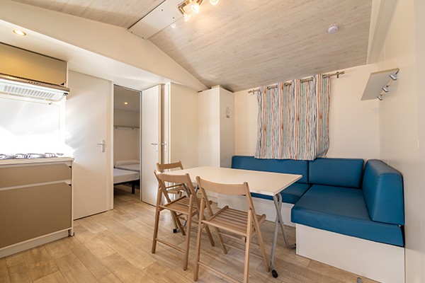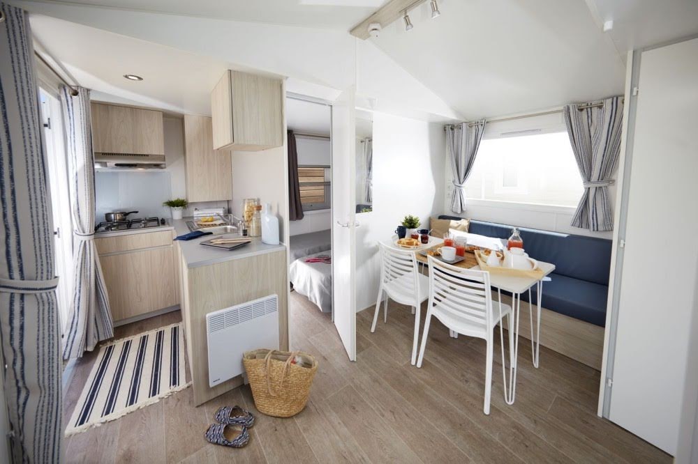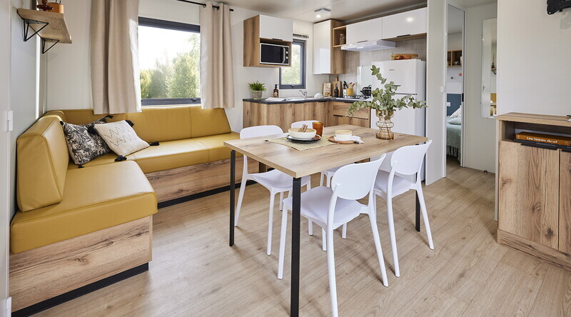 Unser grosses Angebot an Unterkünften umfasst gut ausgestattete Mobilheime mit geräumigen Wohnbereichen, Sonnenterrasse und Klimaanlage. Eingebettet in grünen Stellplätzen finden Sie in unseren modernen Mobilheimen Ruhe und Privatsphäre.