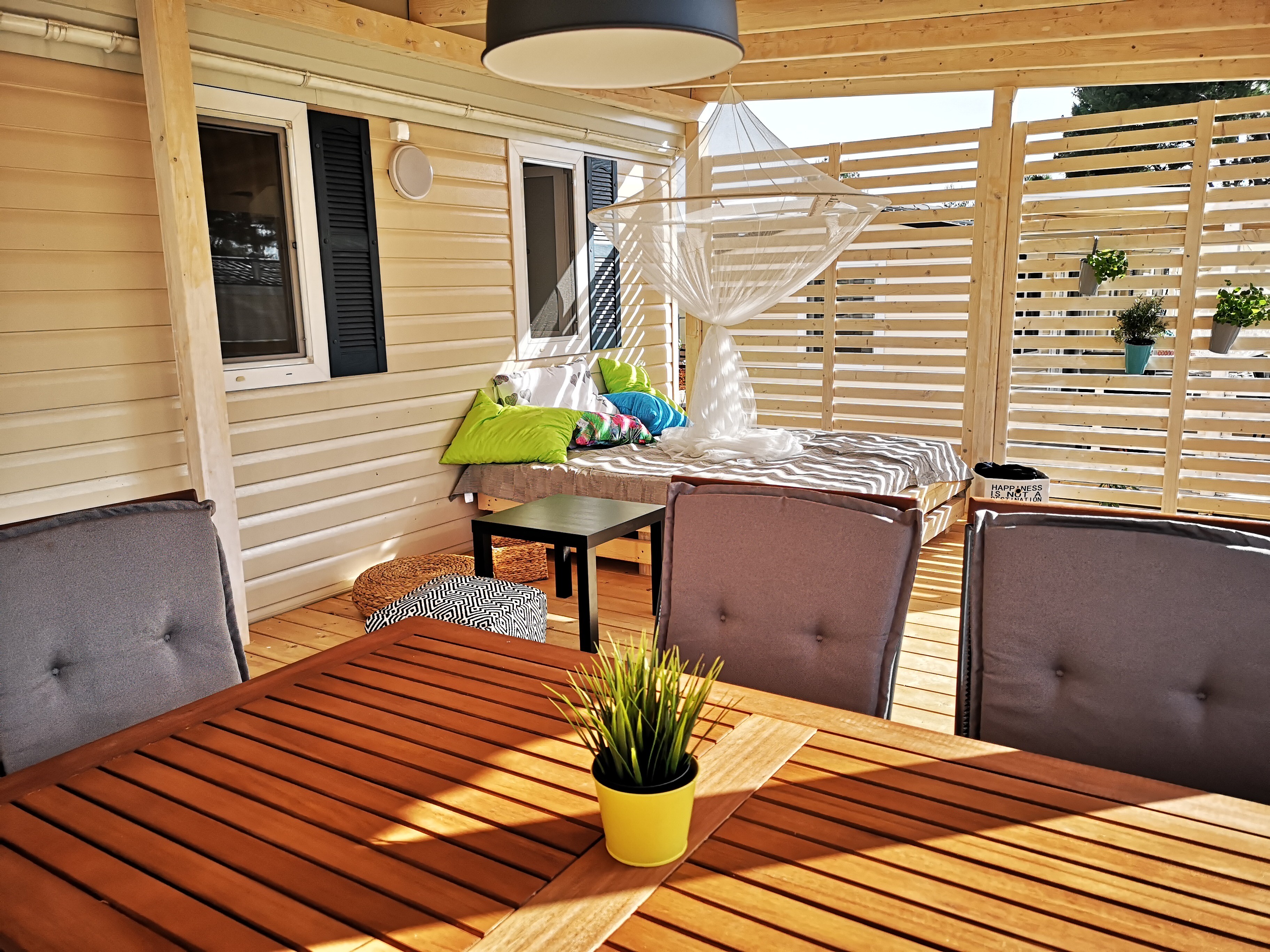 Mit komfortablen und geräumigen Mobilheimen für jeden Geldbeutel und gut ausgestatteten Zelten für bis zu 5 Personen haben wir die perfekte Unterkunftsmöglichkeit für alle Geschmäcker. Unsere Mobilheime verfügen über praktische Einrichtungen und kühlende Klimaanlagen, damit Sie über Nacht einen angenehmen und erholsamen Schlaf finden. Die Mobilheime stehen auf grünen, gut beschatteten Stellplätzen und verfügen über Terrassen zum Chillen, Grillen und für gemeinsame Mahlzeiten mit der ganzen Familie.