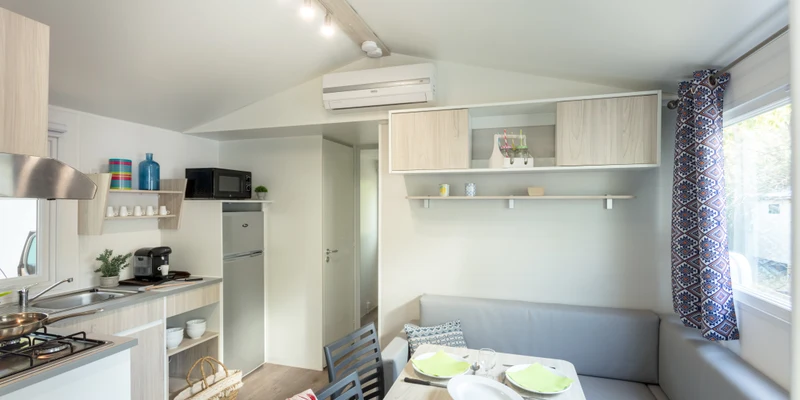 Le camping propose une grande variété d'hébergements et selon vos préférences, vous pouvez profiter d'un séjour en mobil-home, en tente ou vous pouvez réserver un de nos emplacements. Notre gamme de mobil-homes s'adresse à tous les budgets mais offre à tous nos visiteurs un endroit confortable et élégant qu'ils pourront appeler leur maison pendant leurs vacances.