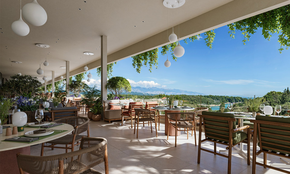 Piscine avec vue sur la baie de Pušća