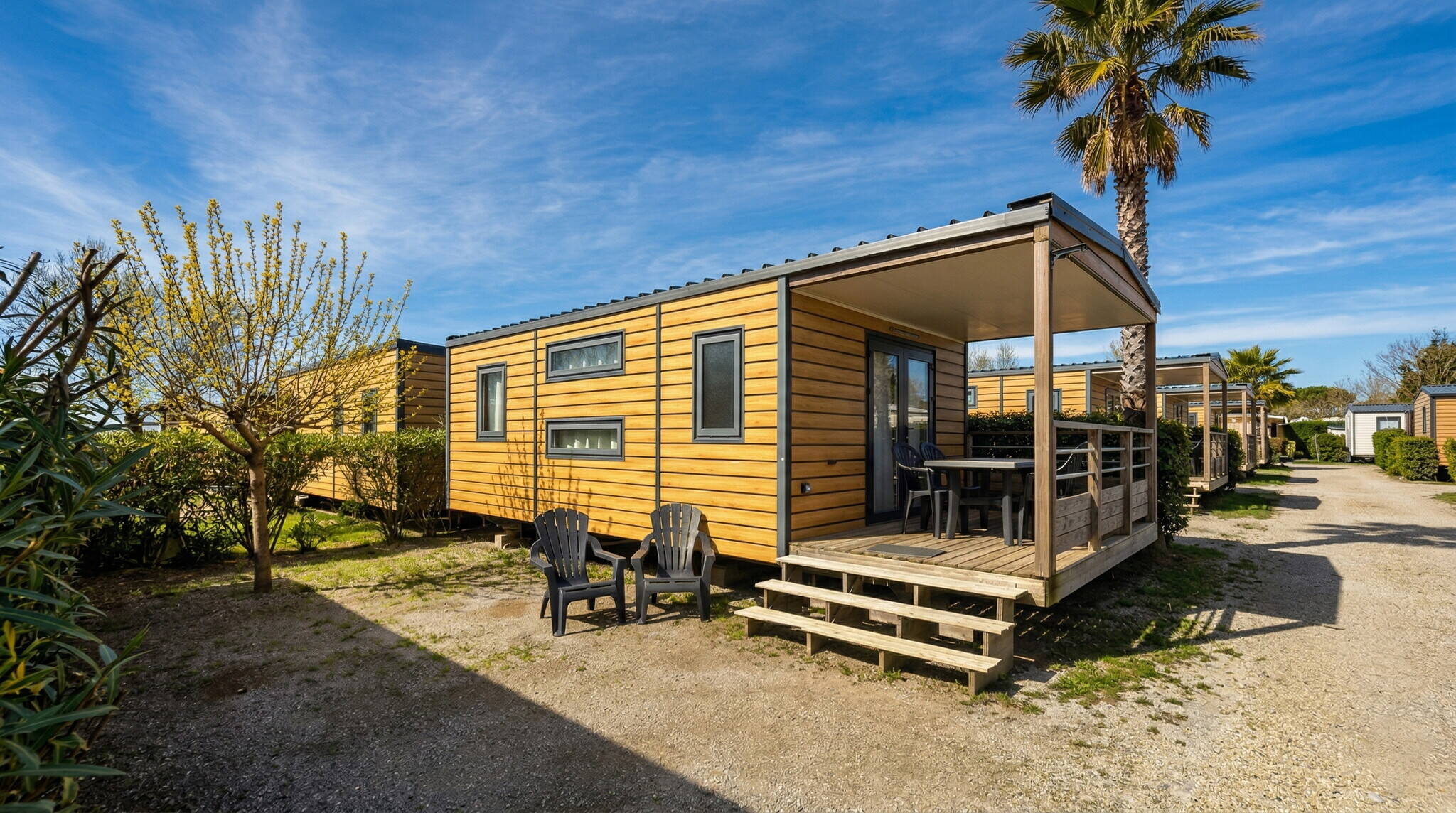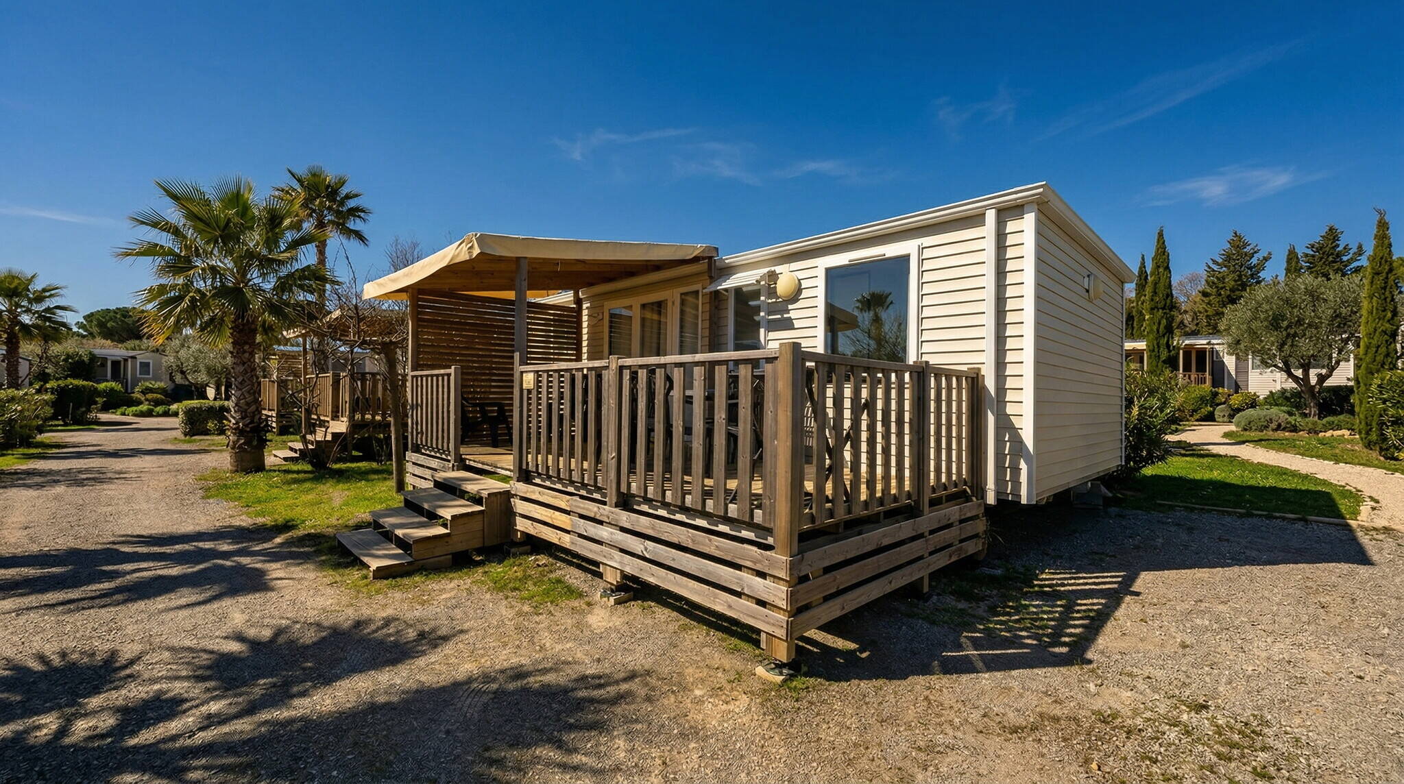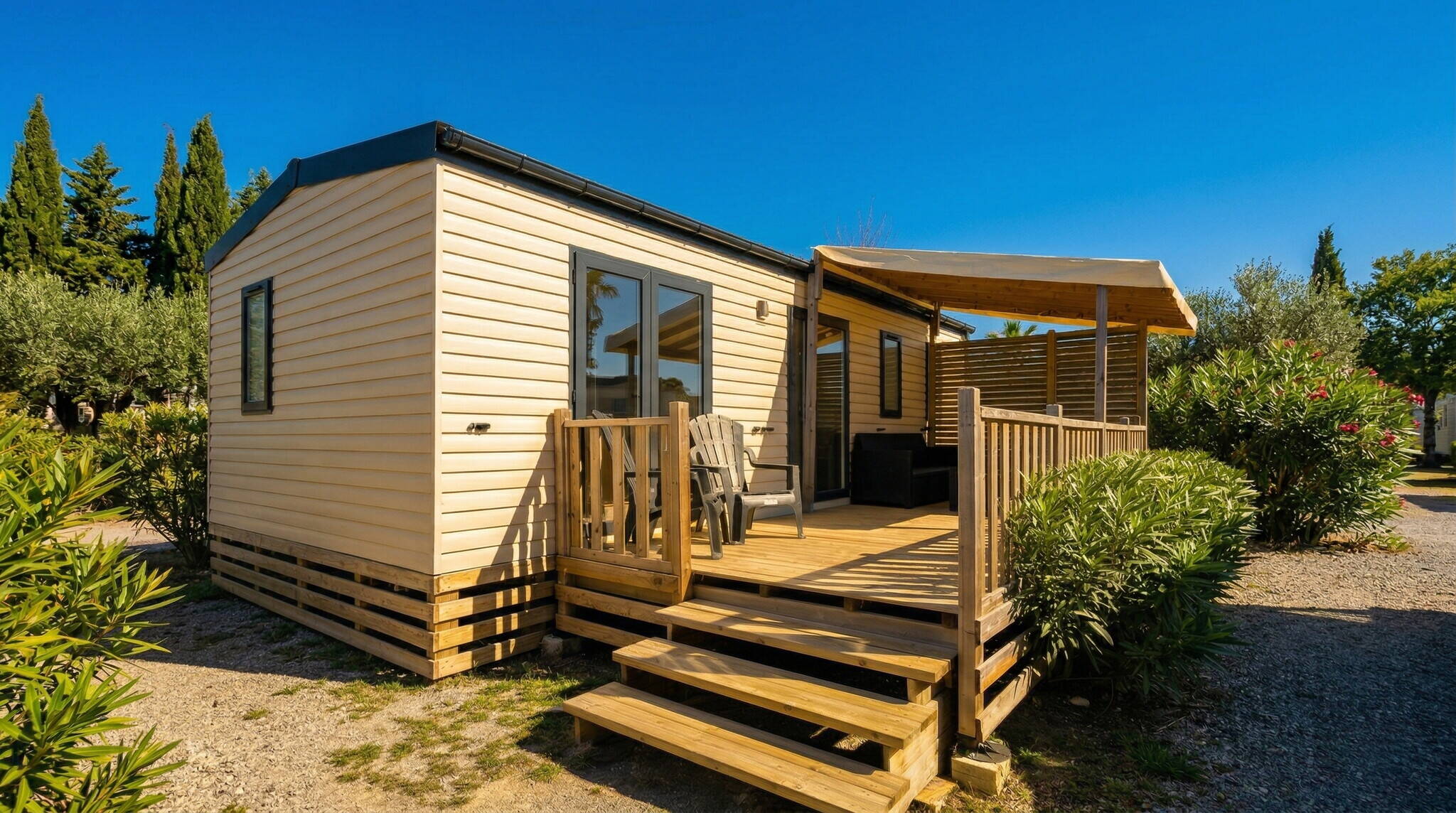 We offer a fantastic selection of mobile homes at the campsite, some even with their own jacuzzi. Our accommodations are located in quiet and shady areas and are air-conditioned. A wonderful home away from home.