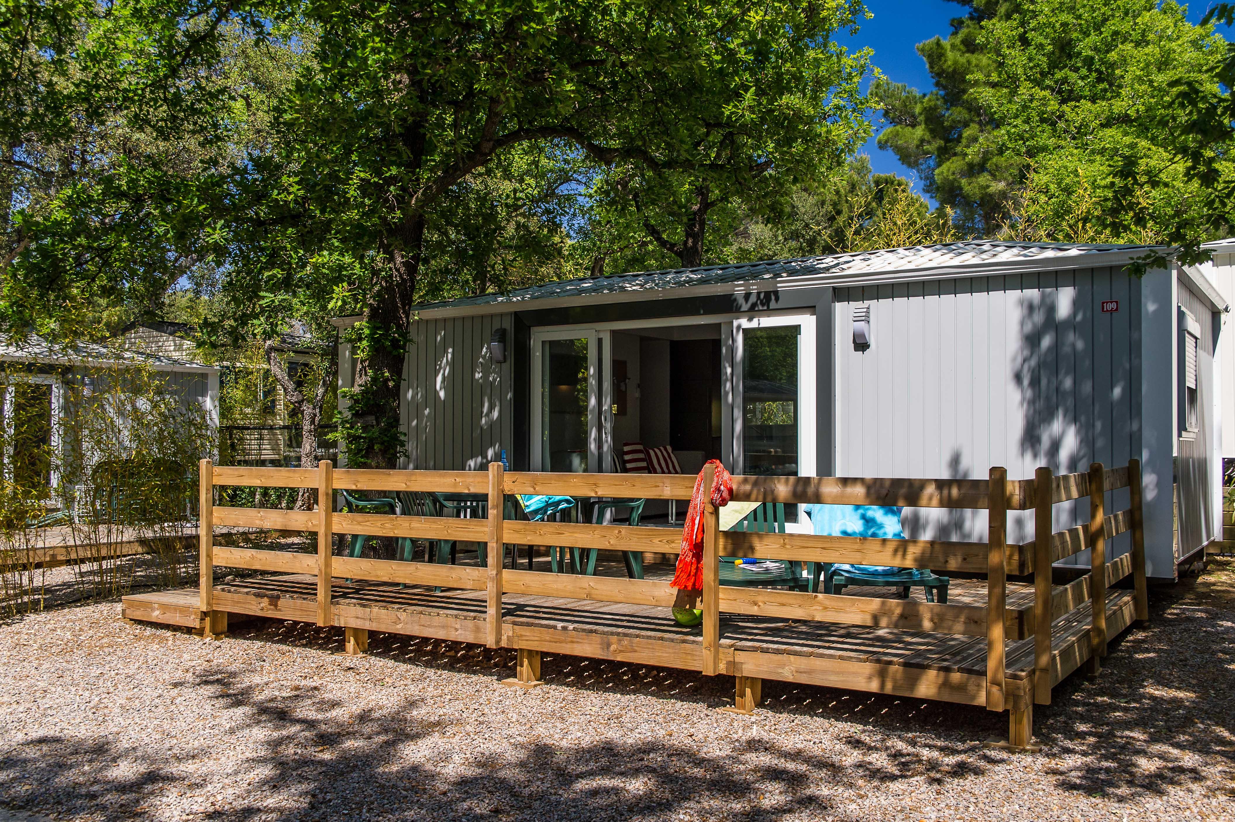 Nei presso del campeggio Bois de Valmarie ci sono tantissime querce da sughero, garanti di piccoli spazi ombreggiati.