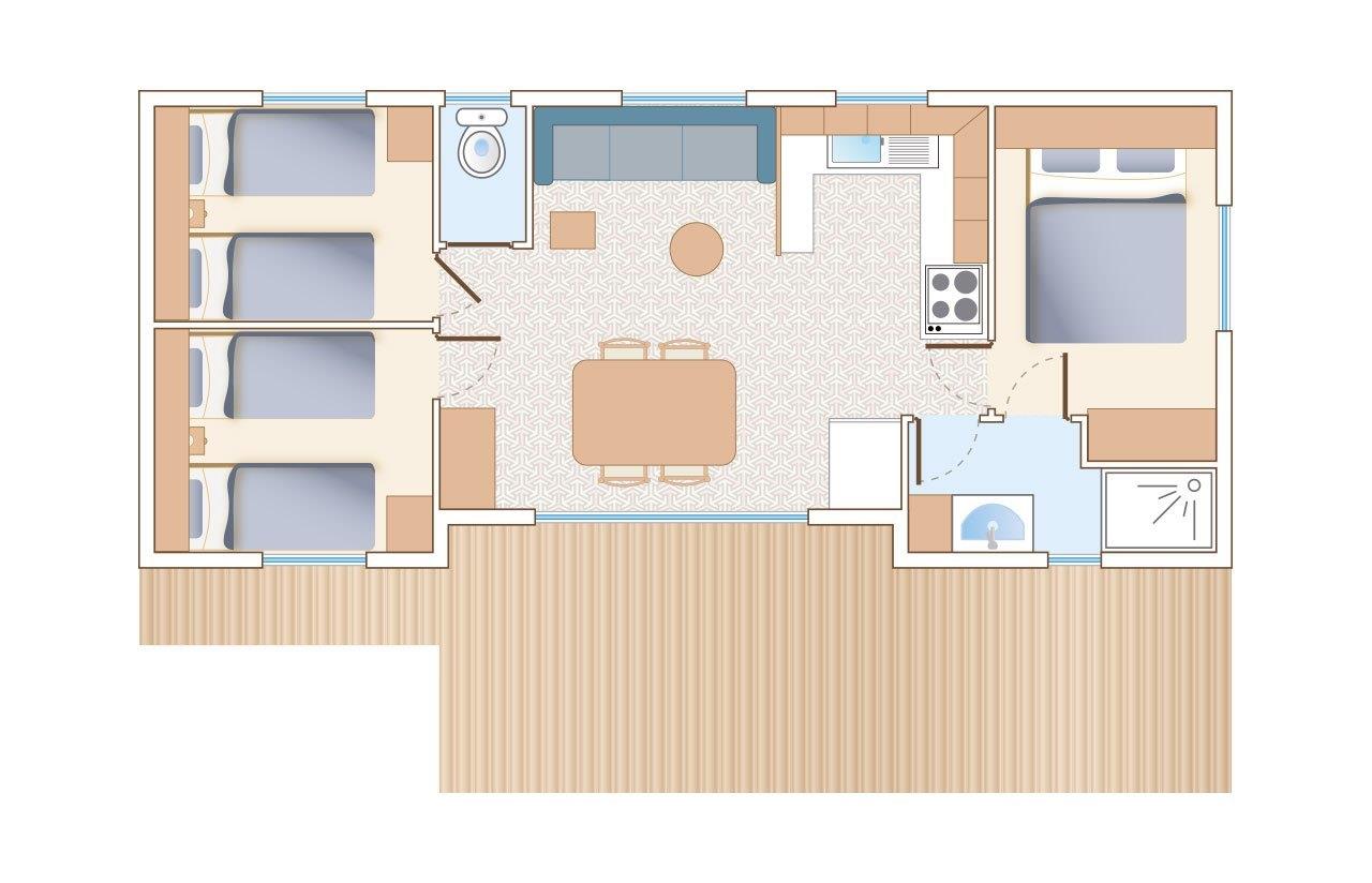 - Piano terra o piccola terrazza integrata in legno, Parzialmente o completamente coperto