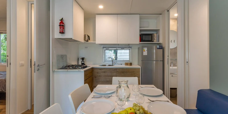 Per quanto riguarda i pasti, essi possono essere preparati all’interno degli alloggi tutti dotati di angolo cottura ben attrezzato. È tuttavia caldamente consigliato di recarsi presso il ristorante del campeggio per gustare i deliziosi piatti della cucina locale, del pesce fresco o ottime pizze. Per i prodotti freschi e qualche souvenir è disponibile un minimarket e bazar.