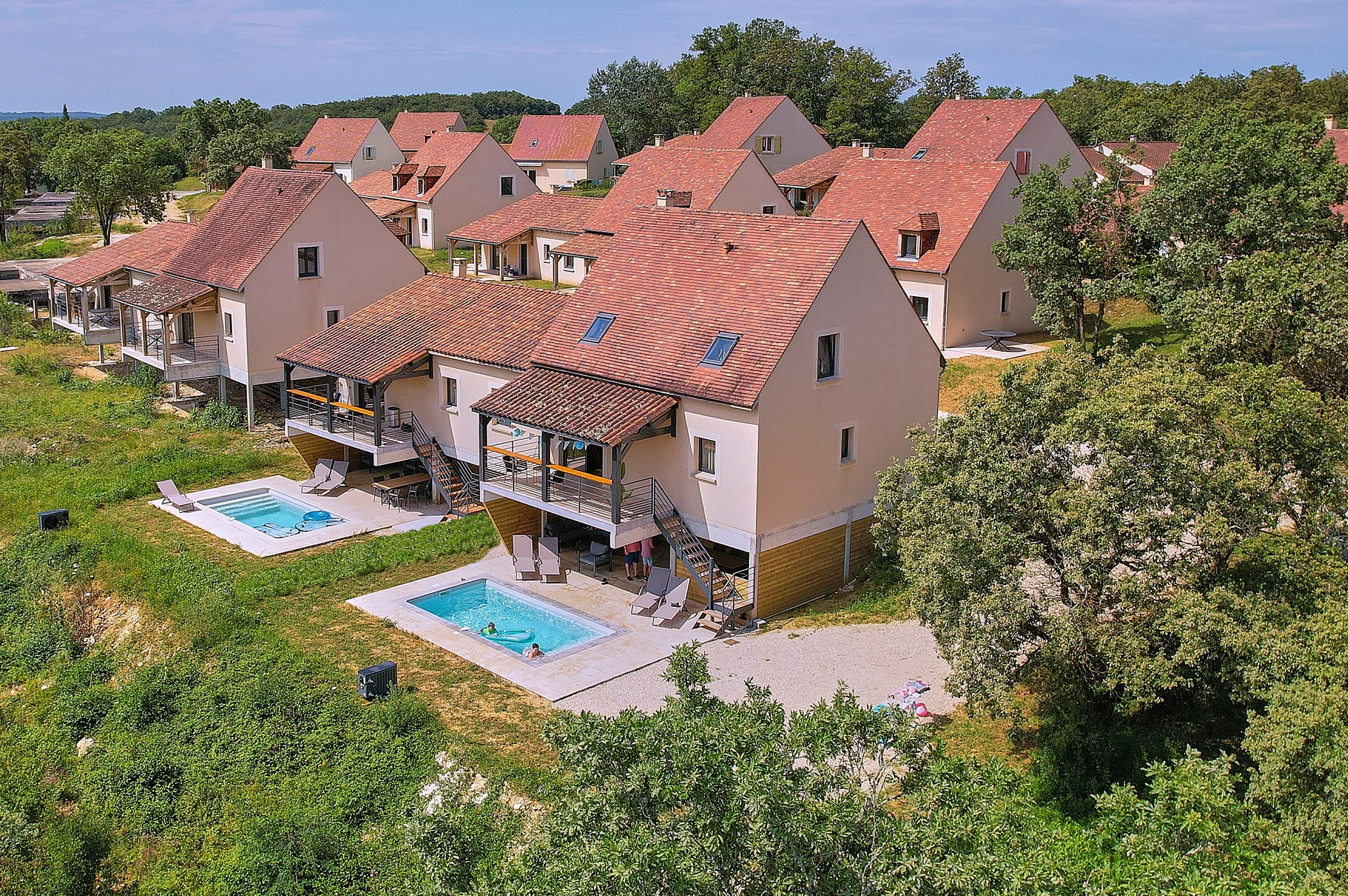 Il parco dispone di tre splendide piscine, tra cui una grande piscina all'aperto con vista spettacolare sull'area circostante. Per i più piccoli c'è una speciale piscina per bambini dove possono sguazzare e giocare in tutta sicurezza. Preferisci l'acqua naturale? Il fiume Dordogna è a breve distanza in auto, perfetto per una giornata di canoa o di nuoto. Con tutte queste opzioni, c'è qualcosa da godere per tutti gli amanti dell'acqua. Inoltre, alcune case vacanza hanno persino una piscina o una jacuzzi privata.