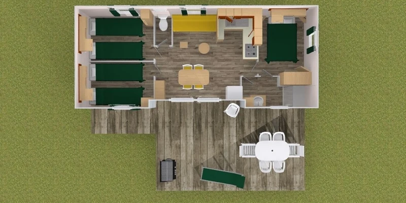 - houten veranda, Geheel of gedeeltelijk overdekt