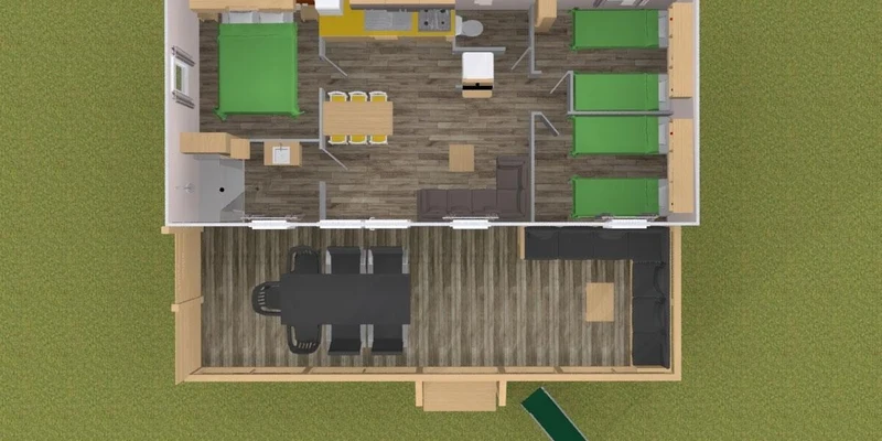 - houten veranda, / geheel overdekt