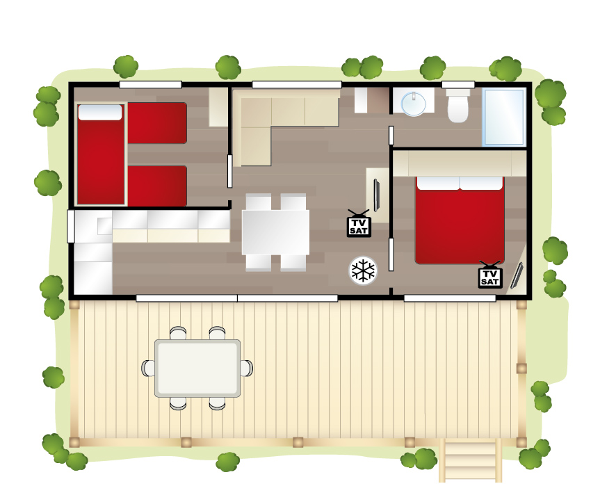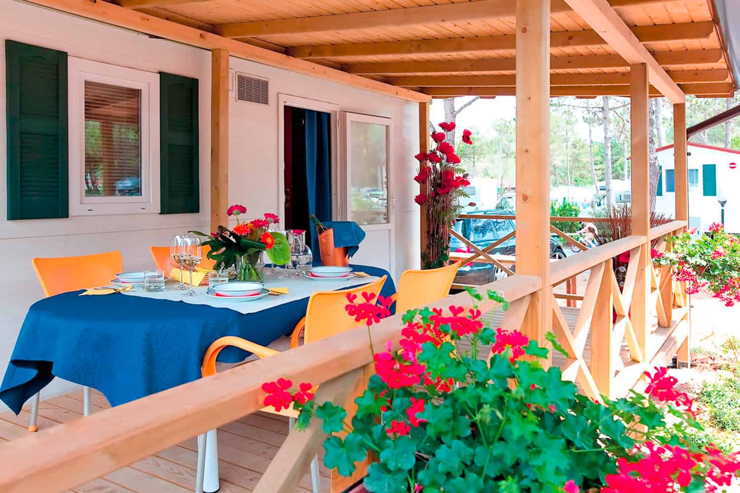 De moderne stacaravans zijn een thuis ver van huis. Er is een keuken, badkamer en zitgedeelte binnen en buiten. Geniet op je zonnige terras van de Italiaanse warmte en heerlijke vakantiesfeer. De warme nachten blijven in de eigen accommodatie aangenaam door je eigen airconditioning.
