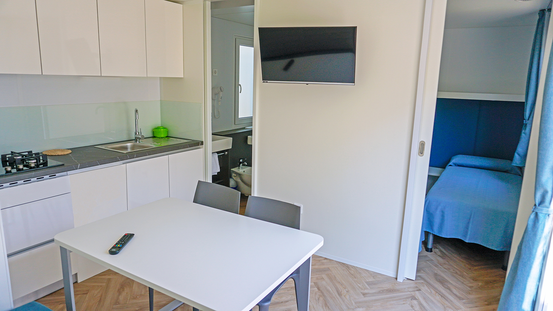 De camping heeft prachtige zwembaden om verkoeling in te zoeken. Duik in één van de zwembaden, roetsj van de glijbanen, vermaak je in de waterspeeltuin en kom tot rust in de ontspanningsruimte met bubbelbaden.