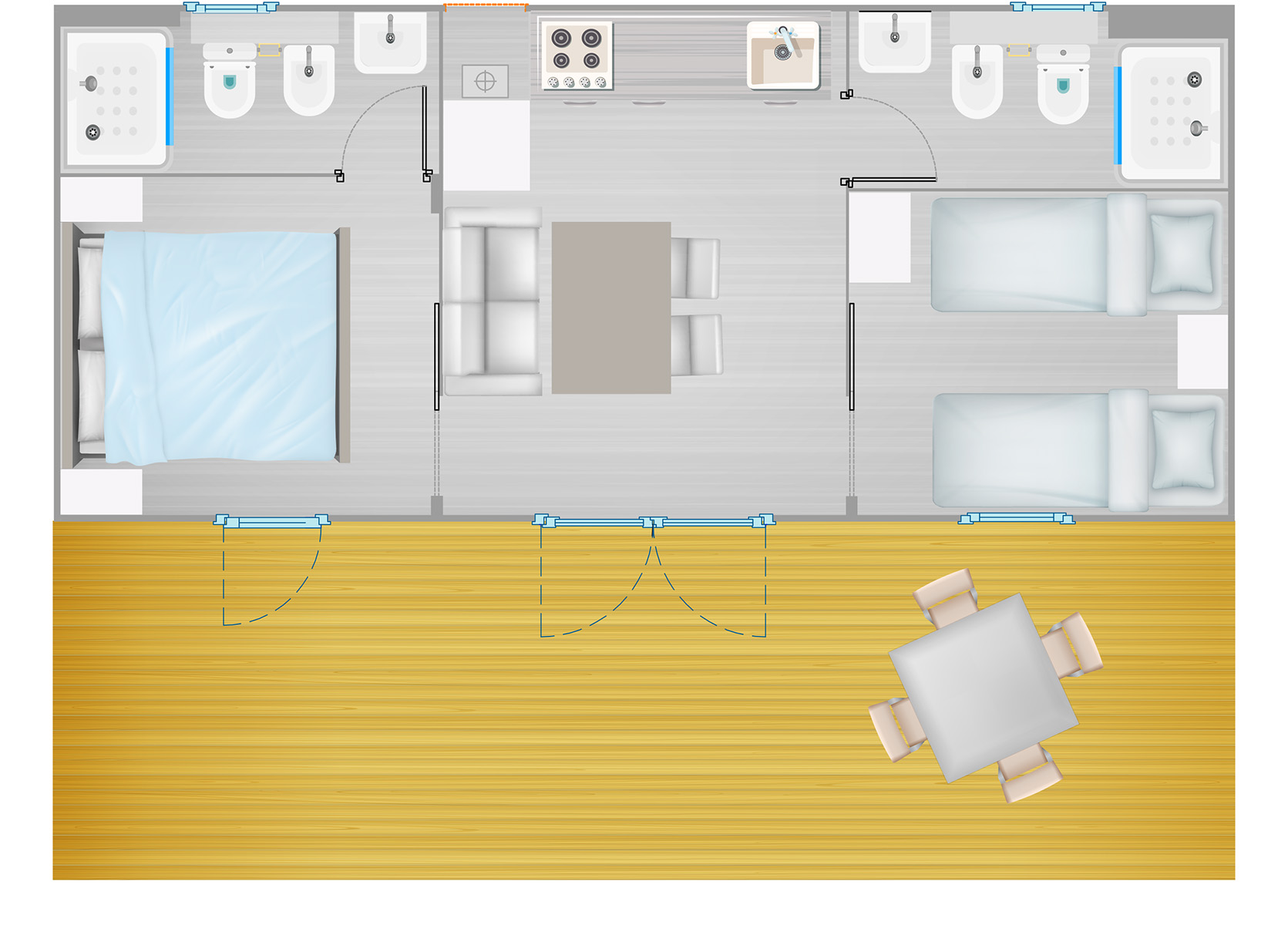 - Houten terras, met parasol