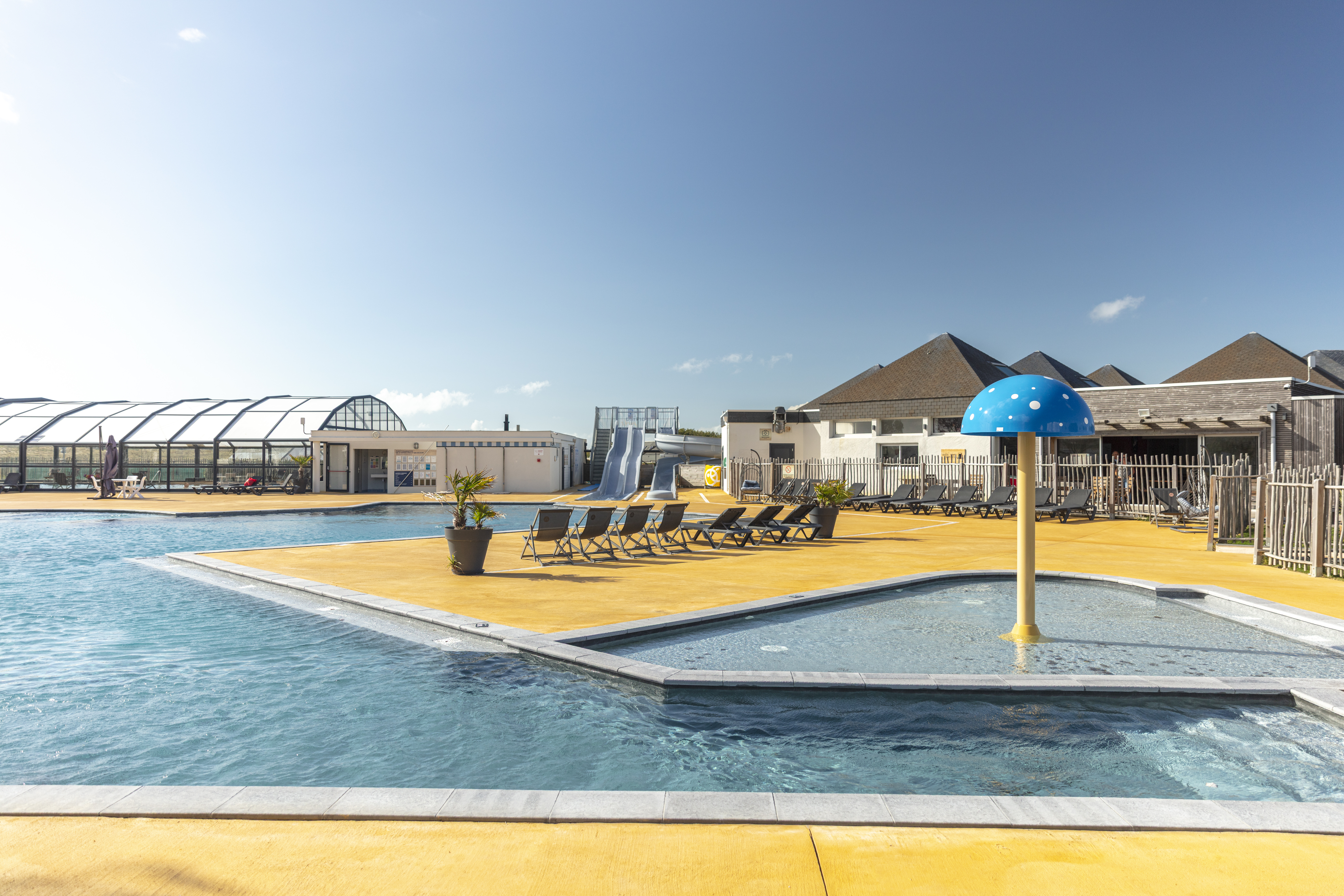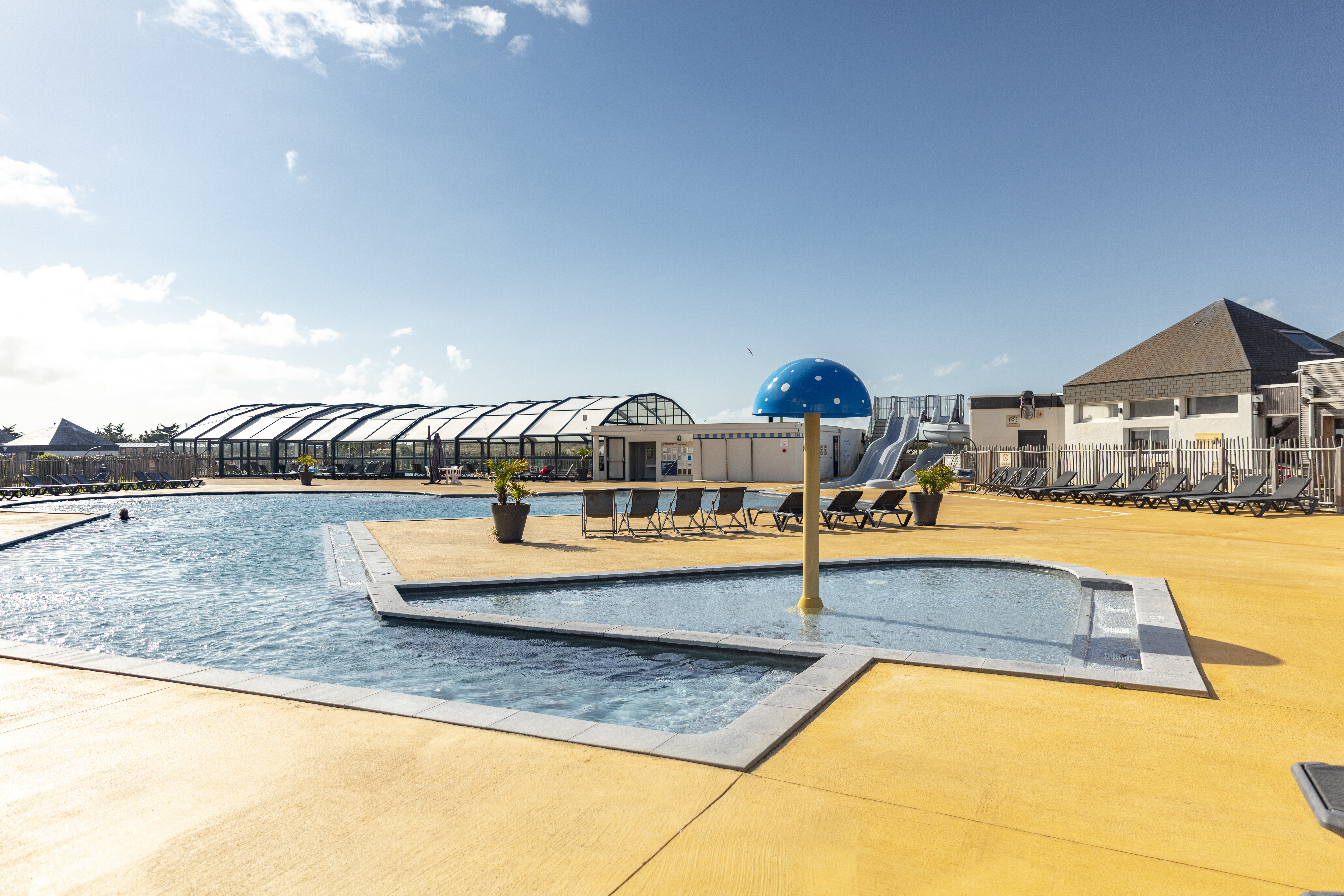 Zwembad met glijbanen en spraypark
