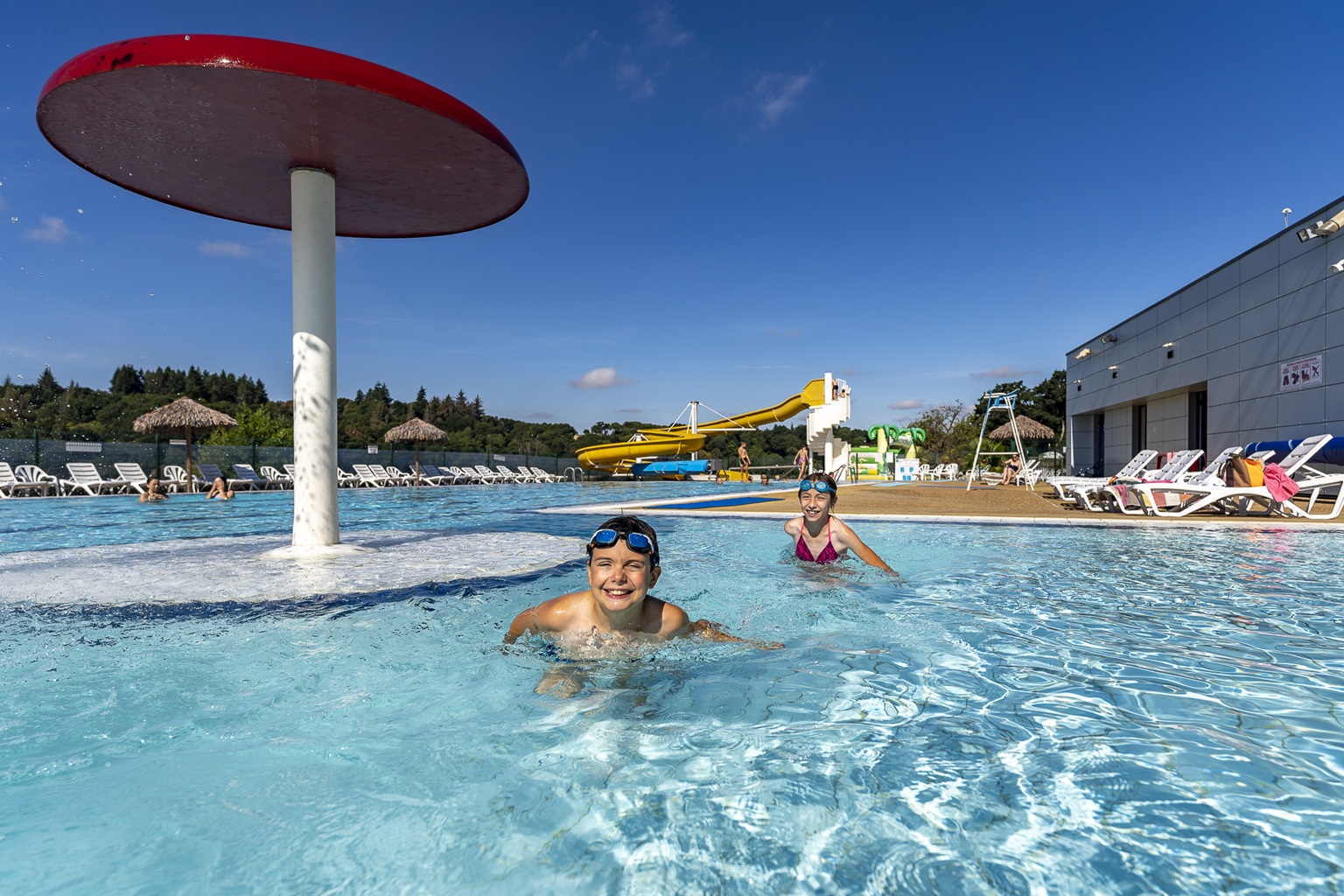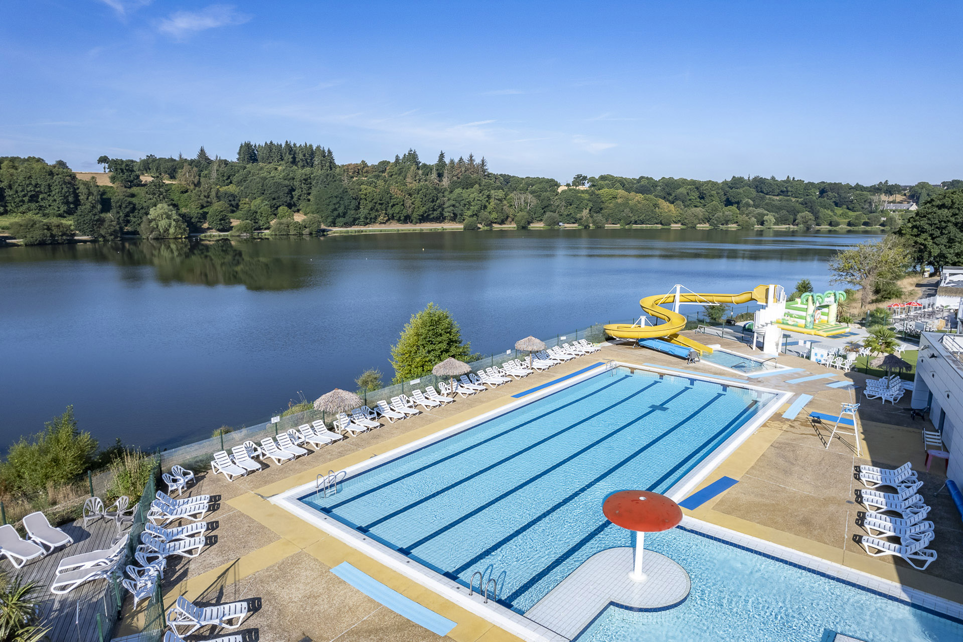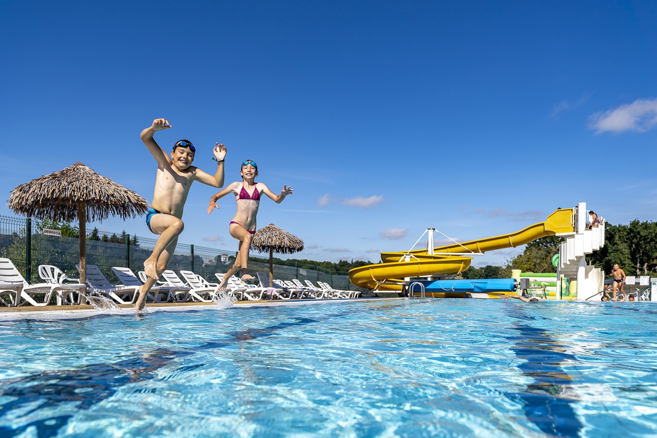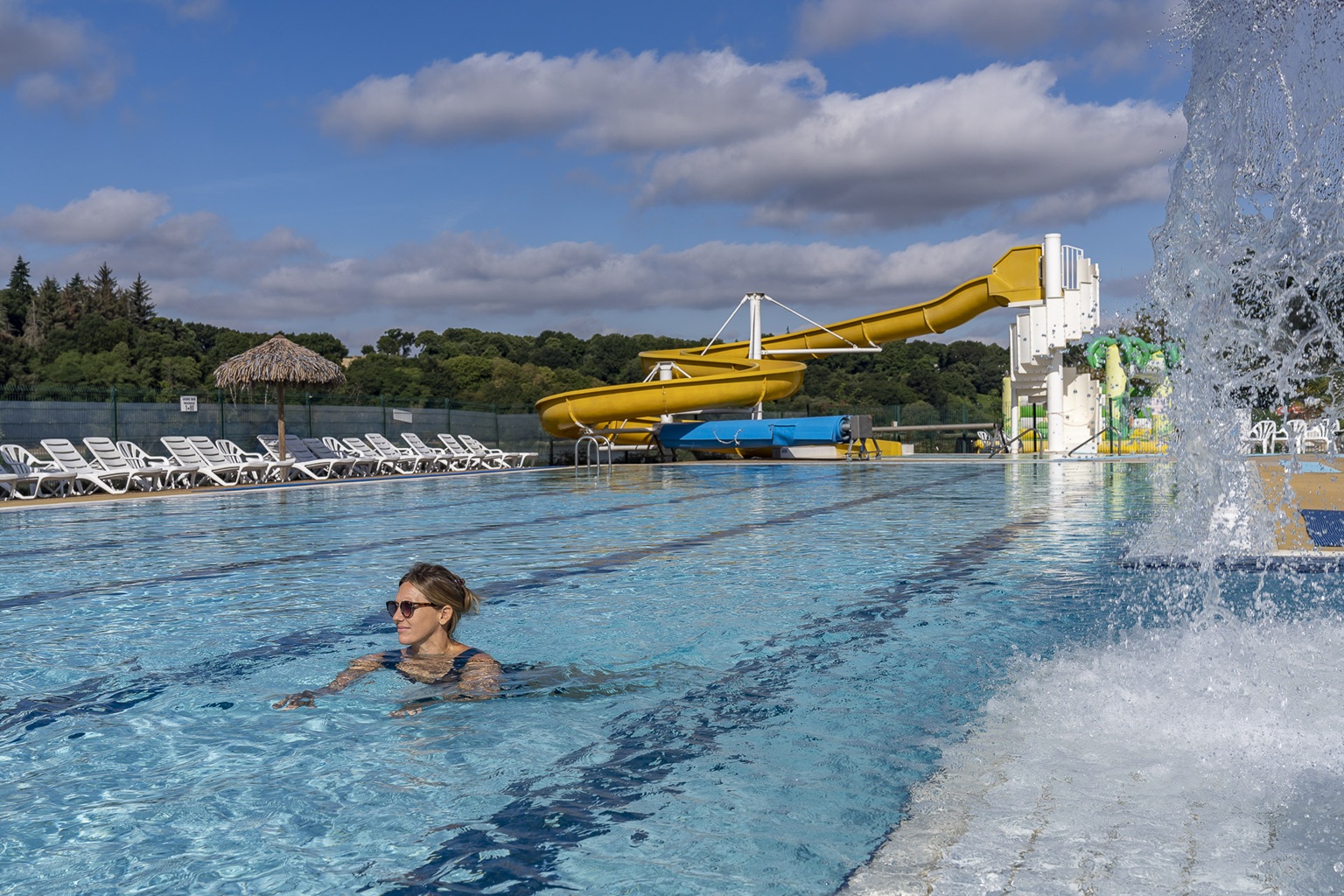 Buitenbad, verwarmd overdekt bad en glijbaan