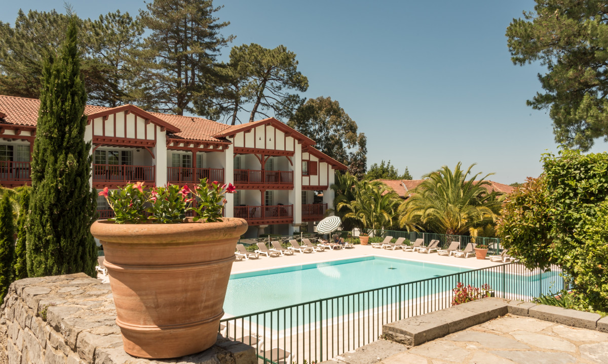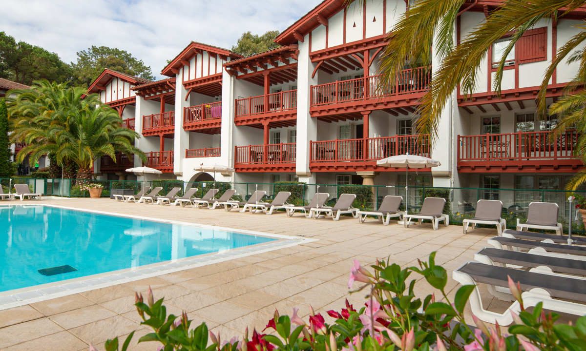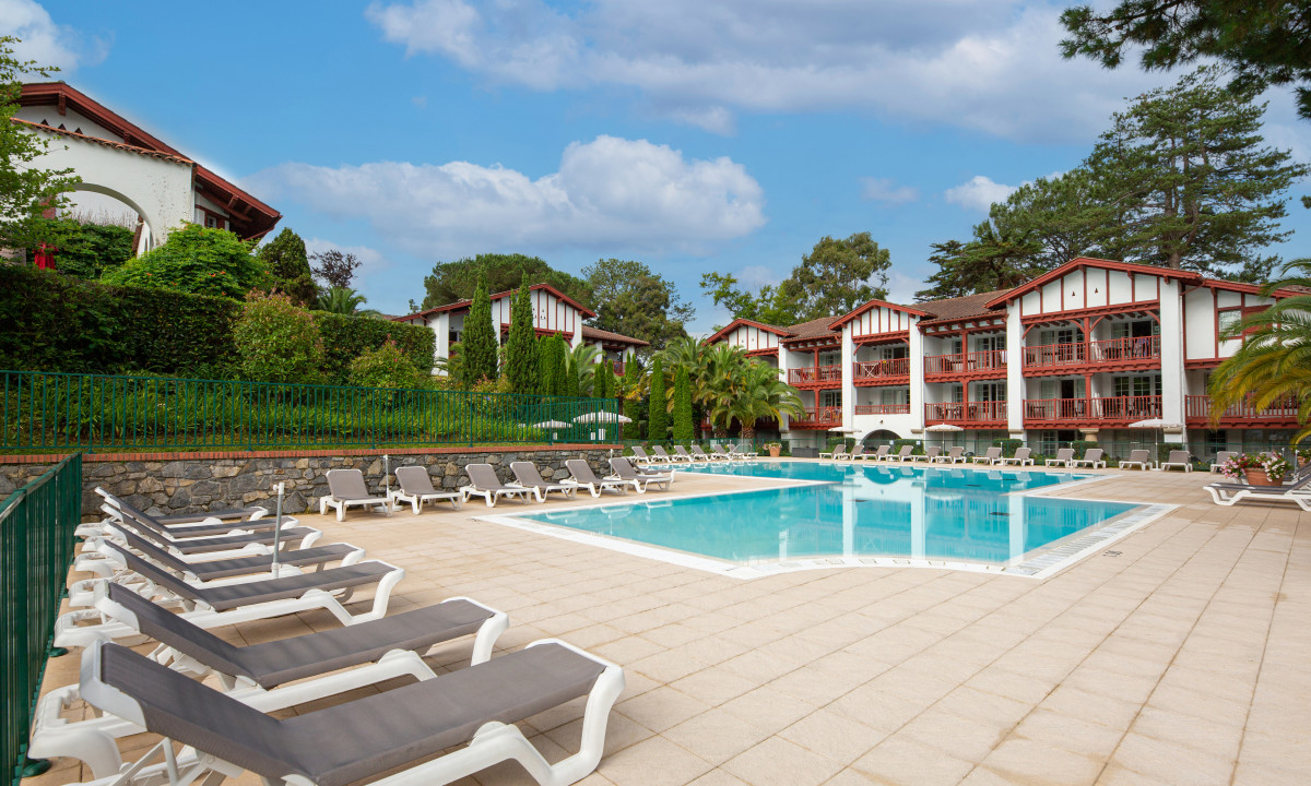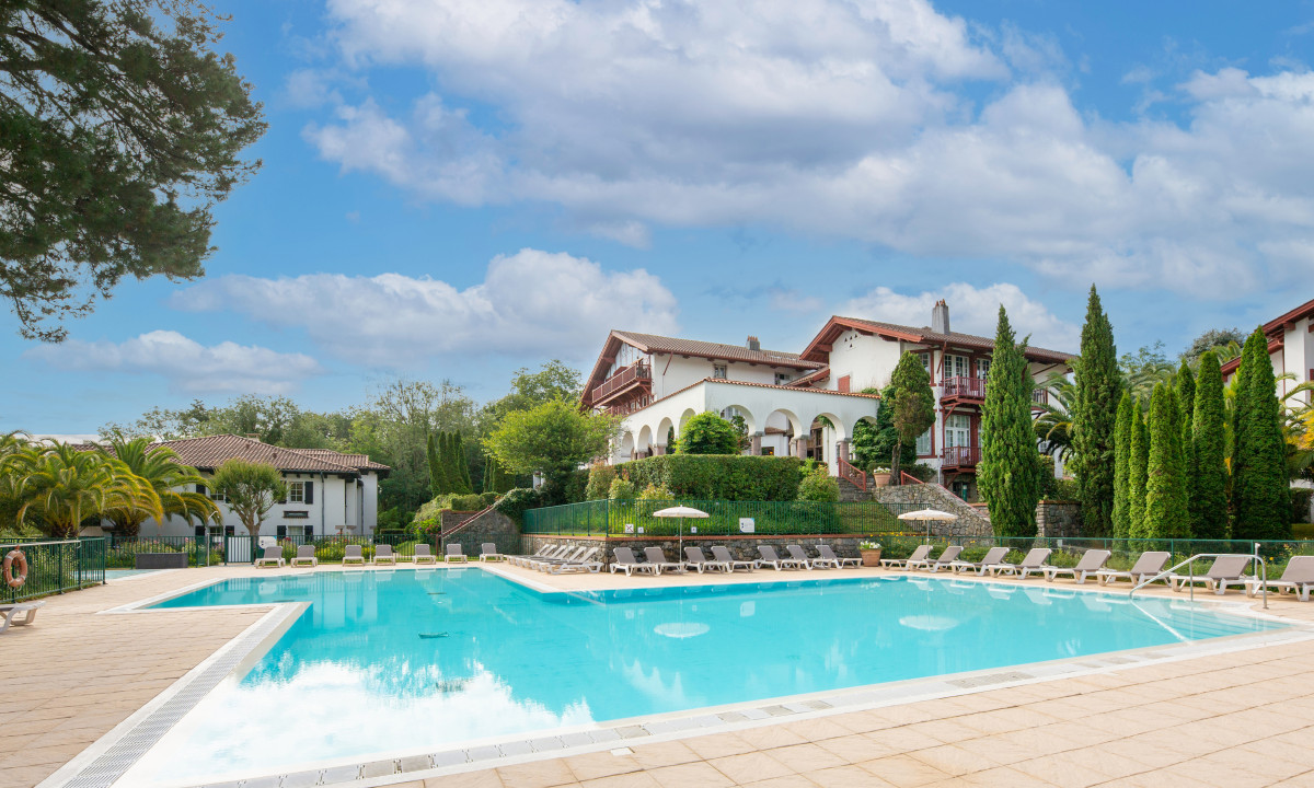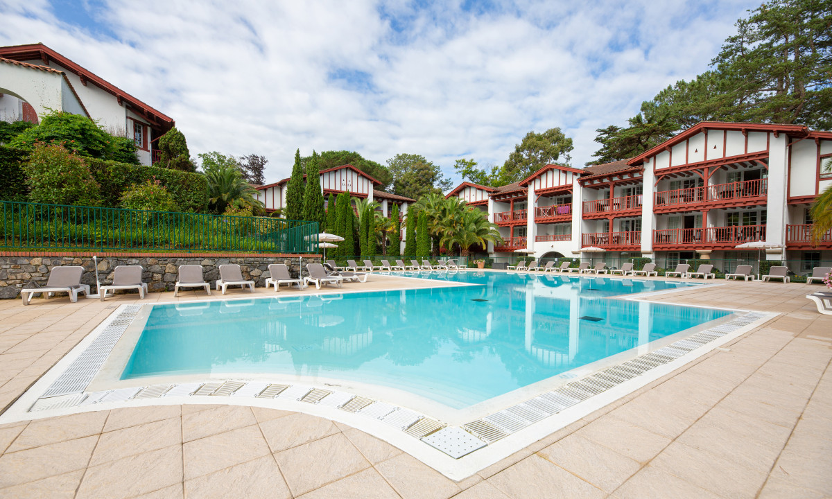 Zwembad met ligbedden