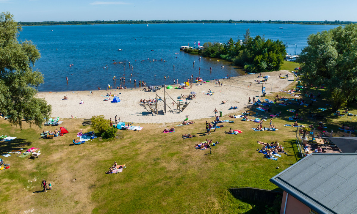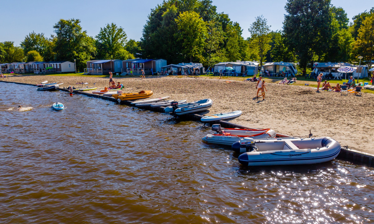 Direct aan een meer met zandstrand