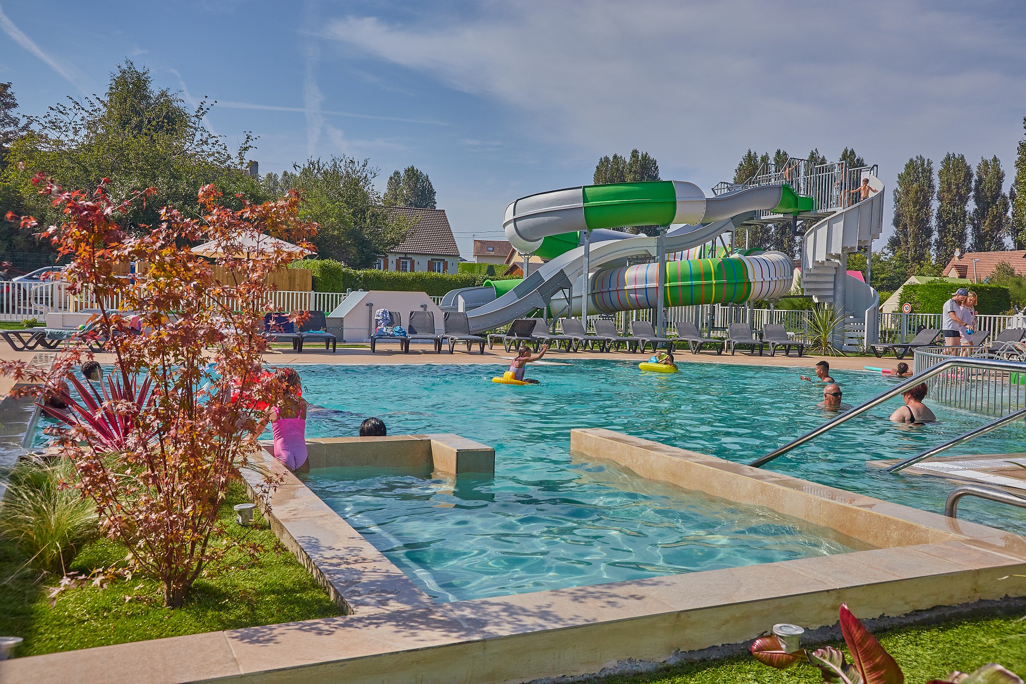 De paden op de camping worden omringd door bomen en de standplaatsen zijn ruim met veel groen. De moderne stacaravans liggen op rustige plekken en zorgen met al hun voorzieningen voor een fijn verblijf op deze camping in Calvados.