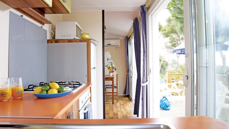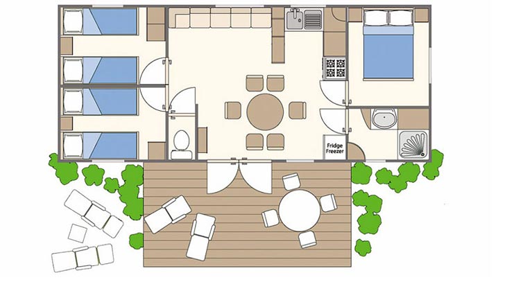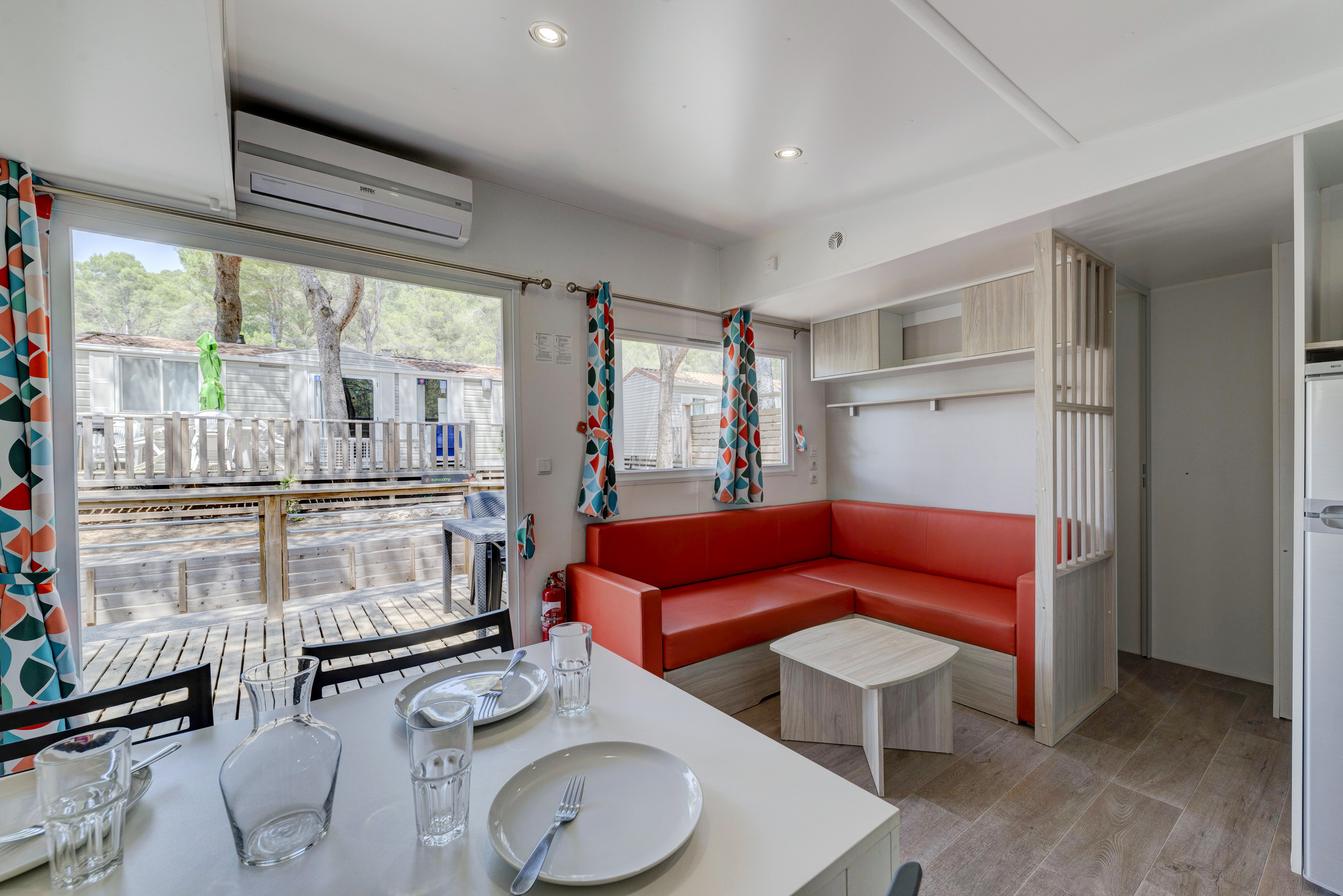 Onze moderne stacaravans hebben fijne voorzieningen, zoals een terras en, in de meeste gevallen, airconditioning. Met de rustige en groene sfeer rondom de accommodatie is dit je perfecte tijdelijke thuis