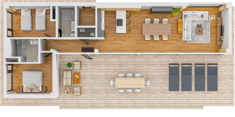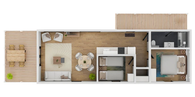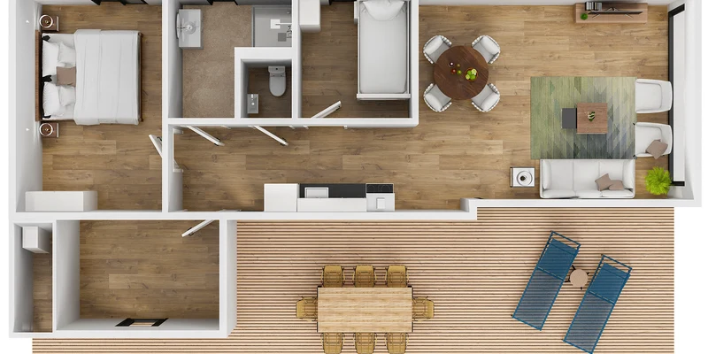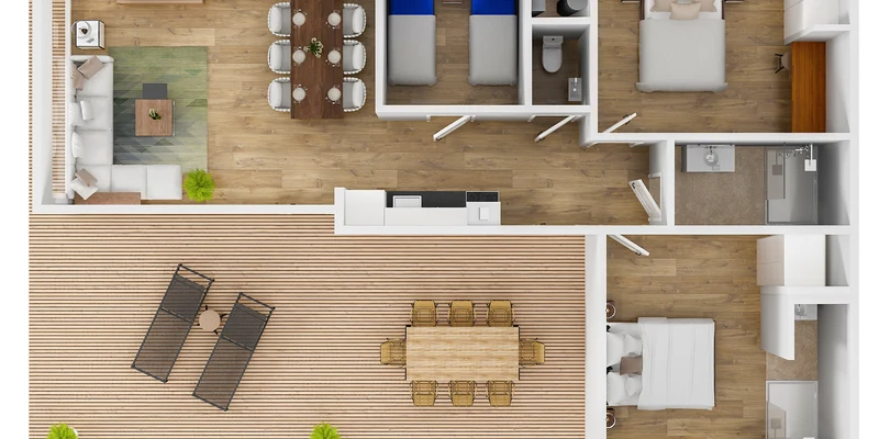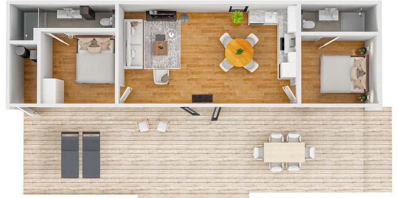 - Houten veranda of stenen terras