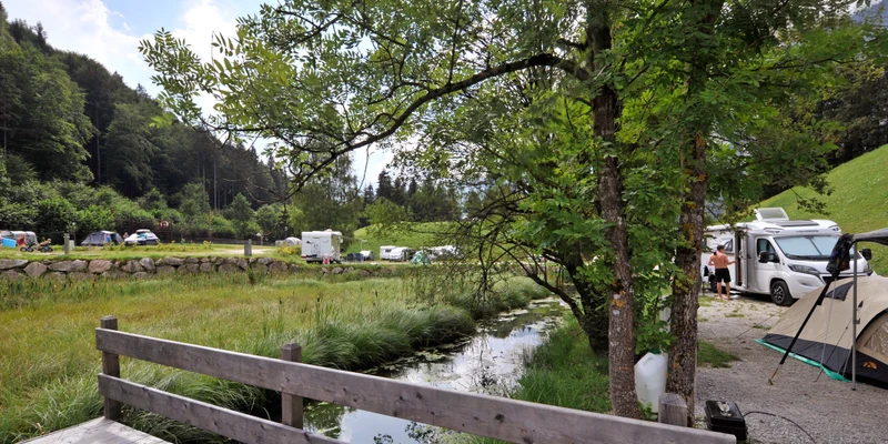 Aan de Reintalersee in prachtige bergachtige groene omgeving