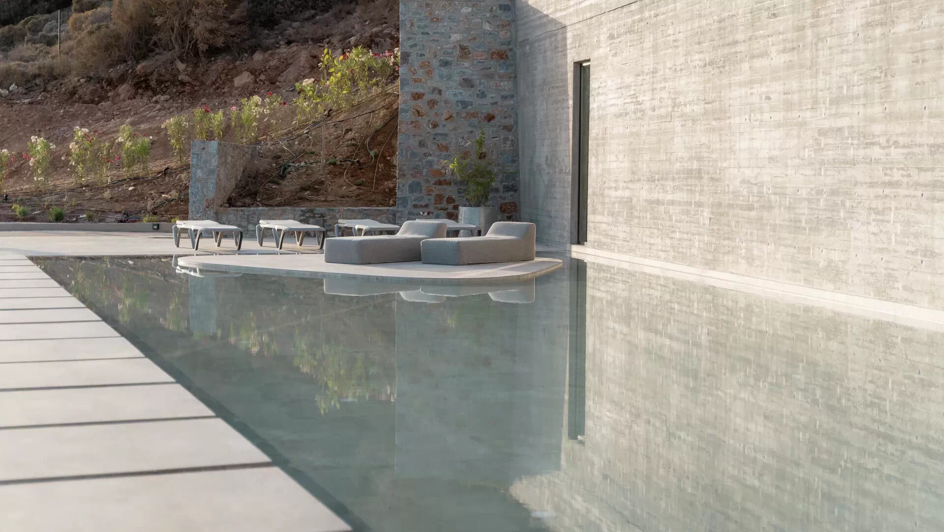 Zon, zwembad en stijl op een heuveltop