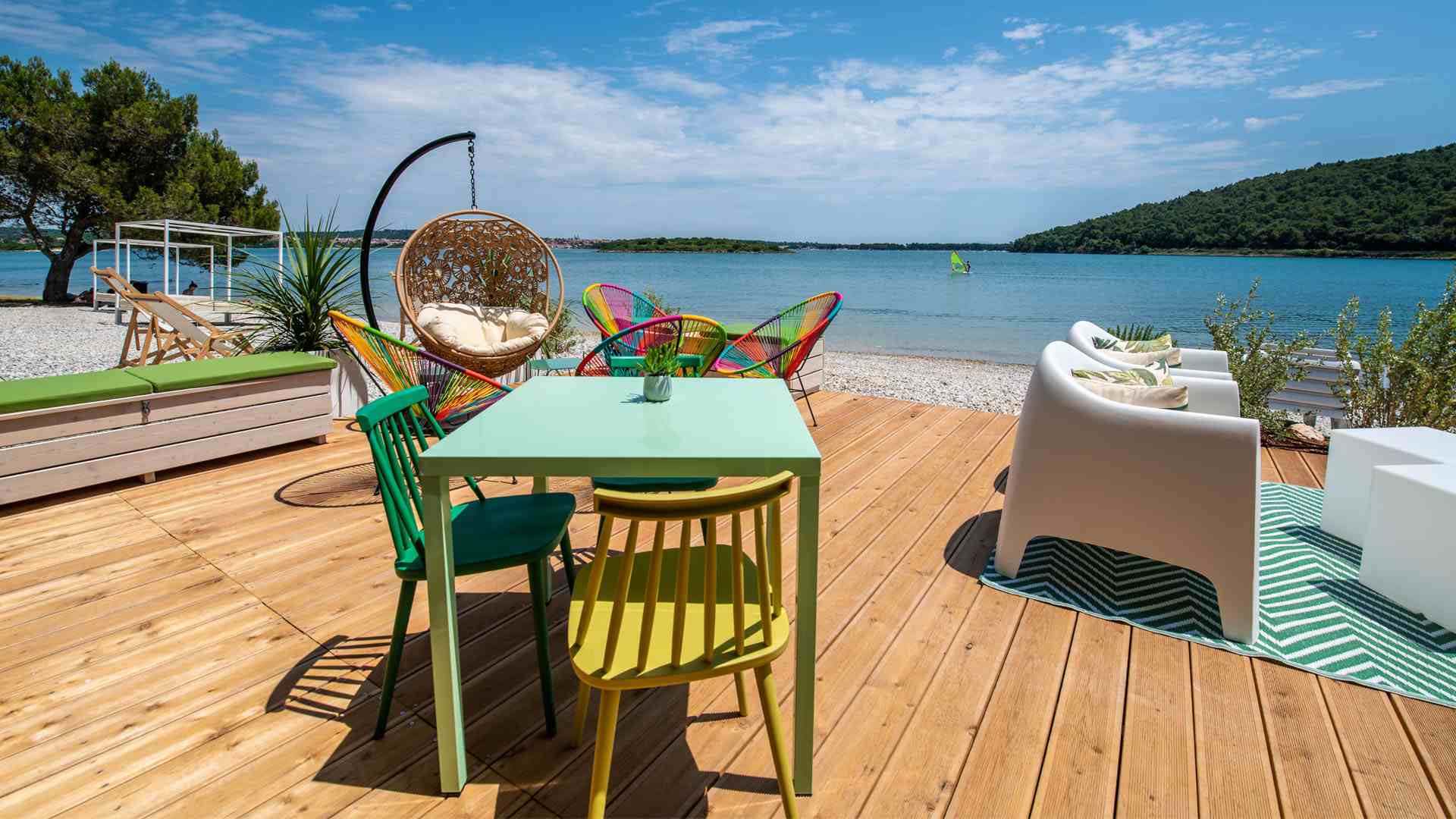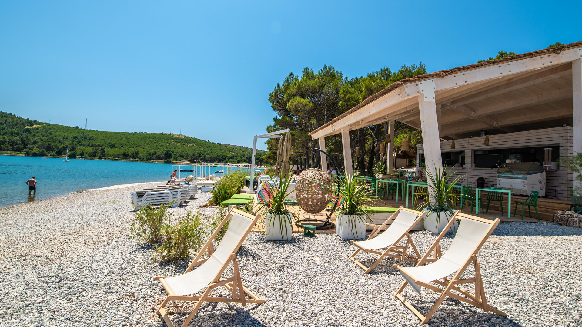 Tuż przy pięknej, zacienionej skalistej i żwirowej plaży
