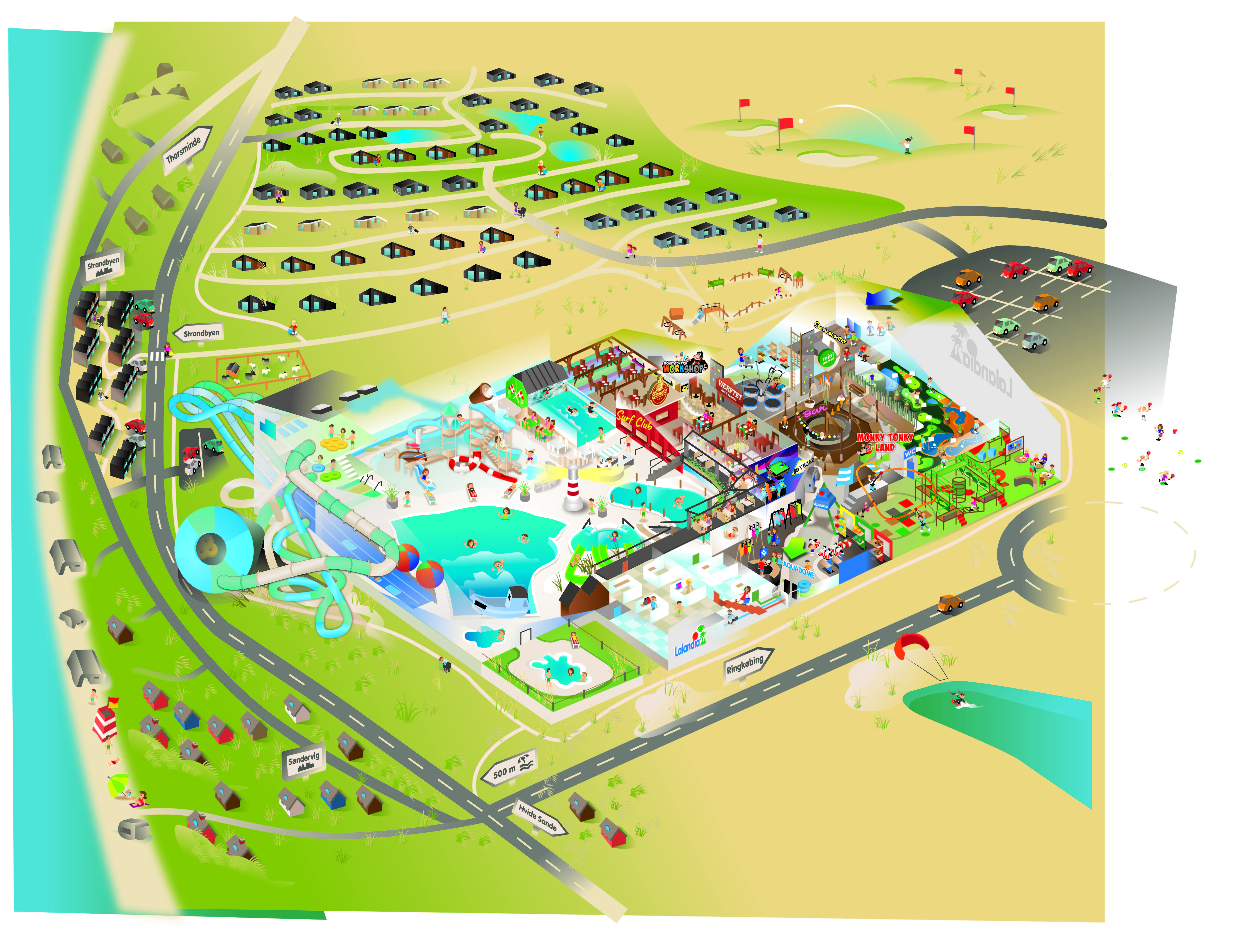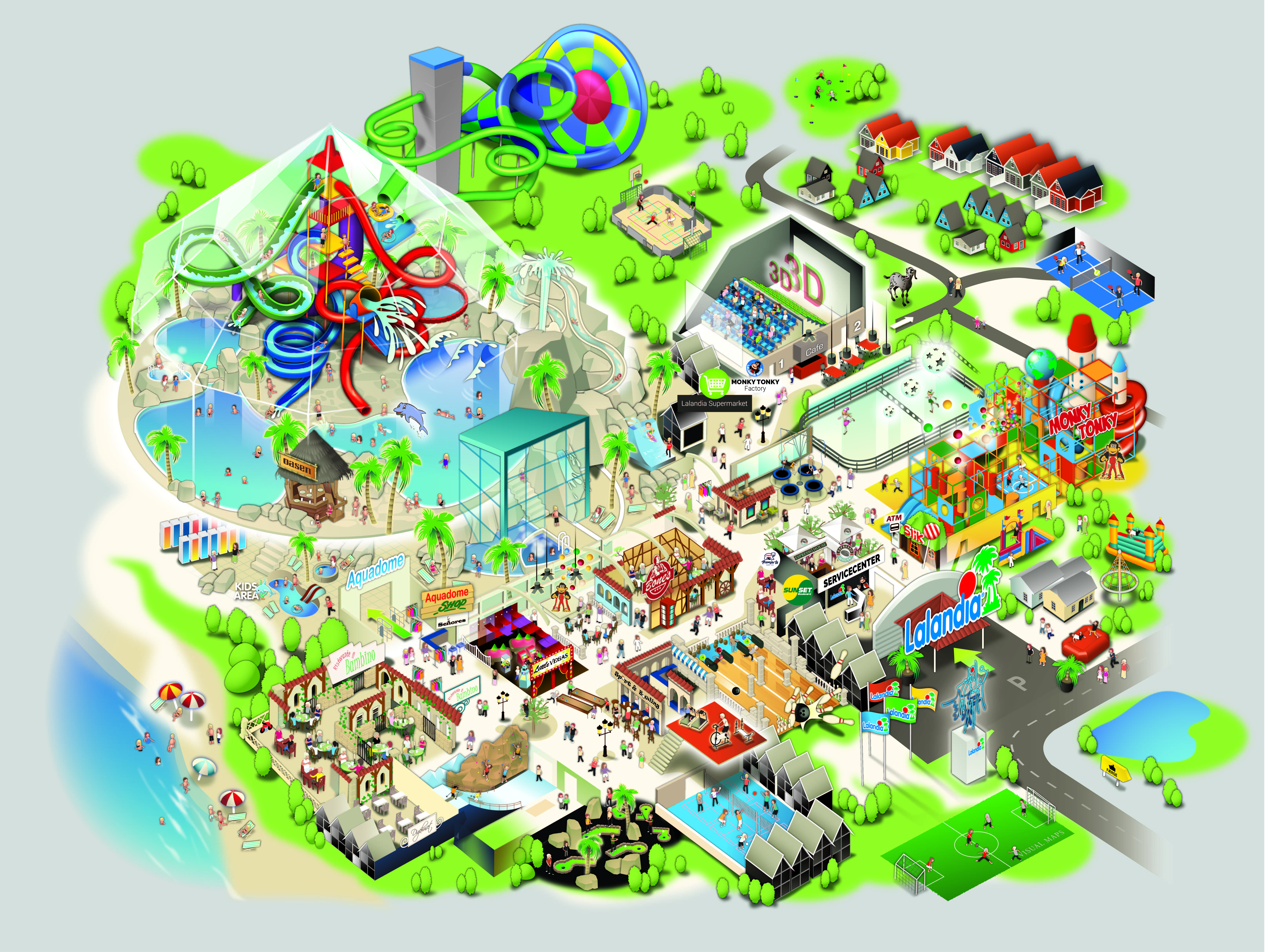Park wodny ze zjeżdżalniami i parkiem wodnym