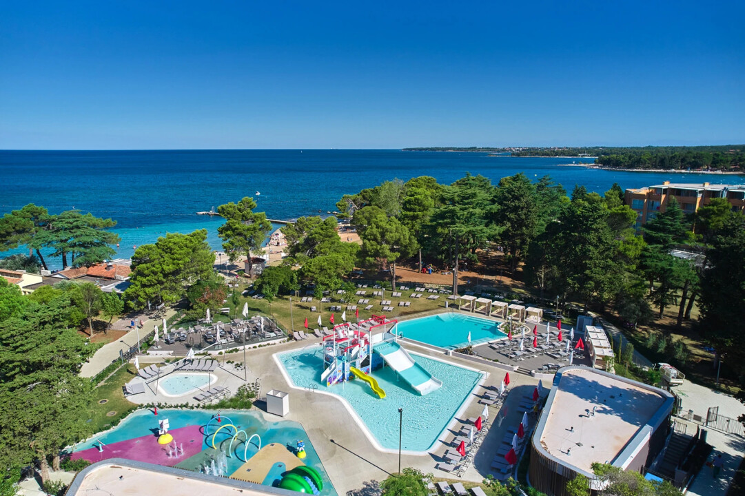 Ogrzewany odkryty basen ze zjeżdżalniami