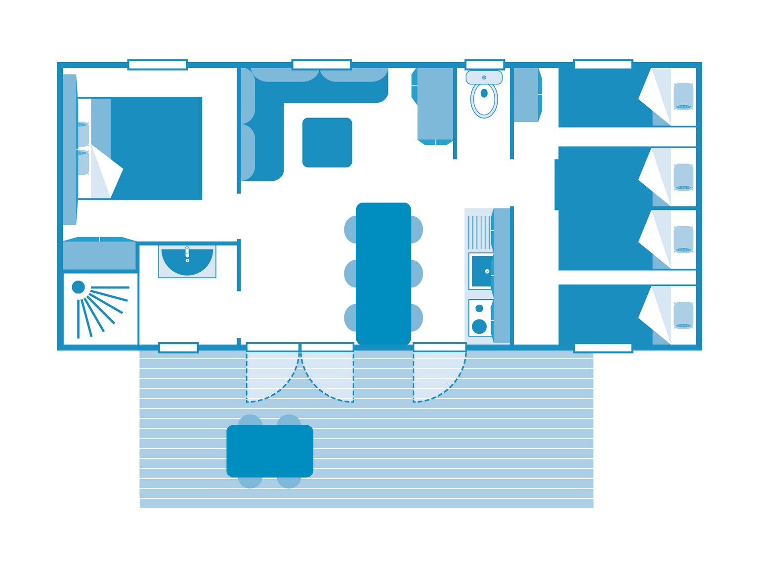 - Kamp brez avtomobila z neposrednim dostopom do plaže