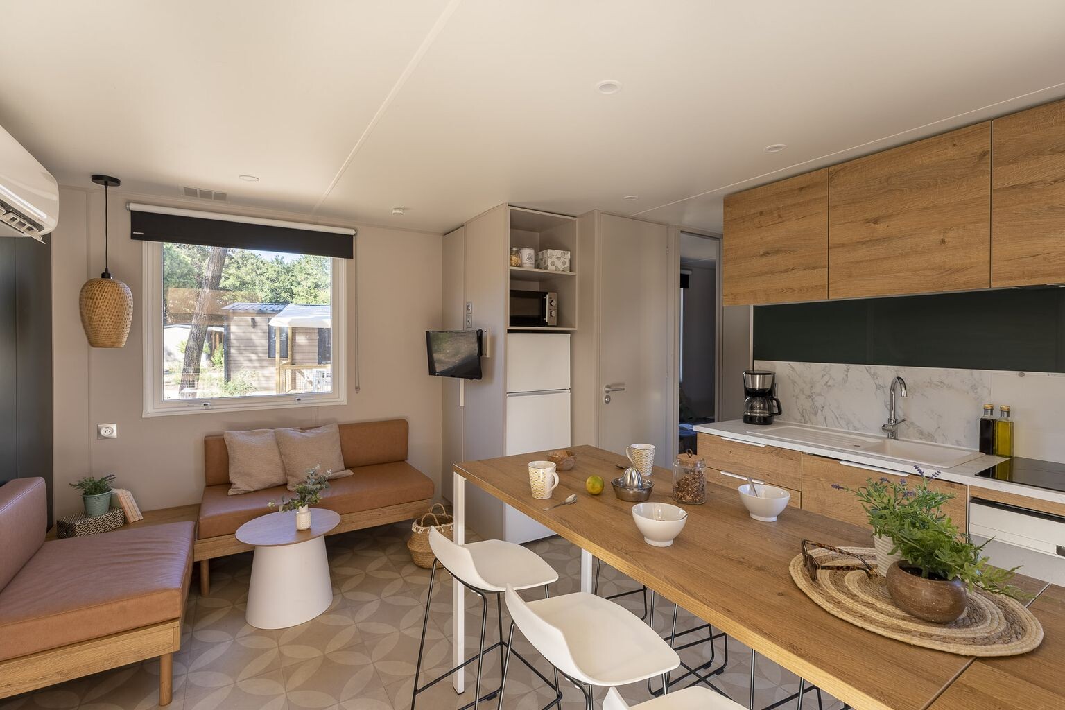 K počitnicam v Franciji spada tudi dobra hrana, zato boste na lokaciji našli trgovino z živili in pekarno. Če želite resnično uživati, si privoščite obrok v restavraciji, nato pa se odpravite v bar na kozarec vina. Hitro se boste počutili počitniško razpoložene.