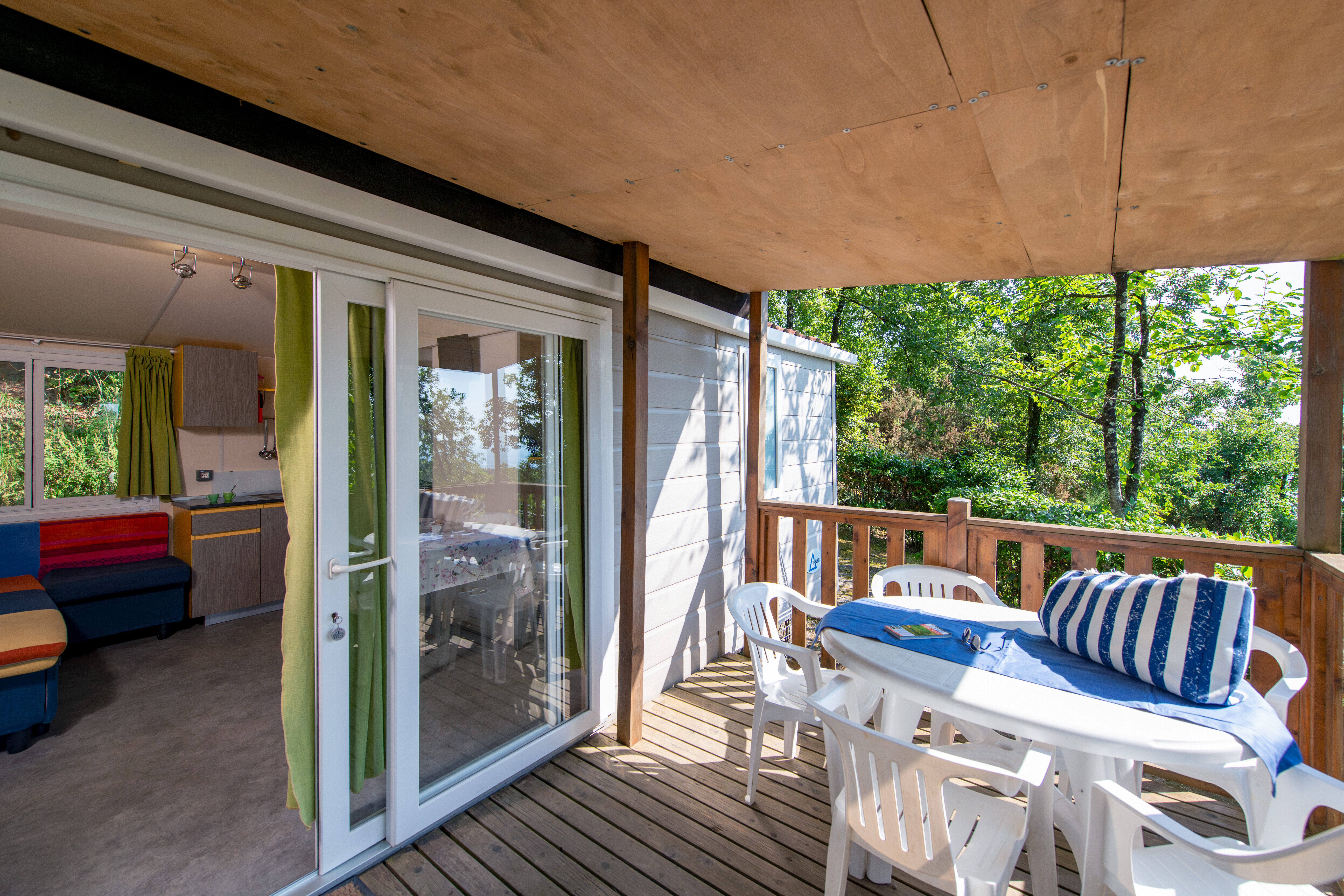 - Terasa z lesenim podom ali kamnita terasa, s tendo