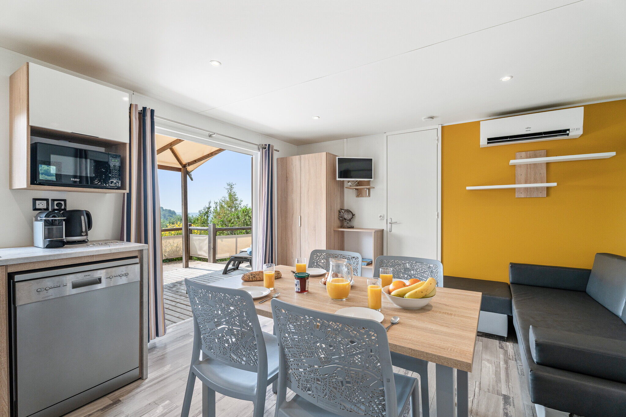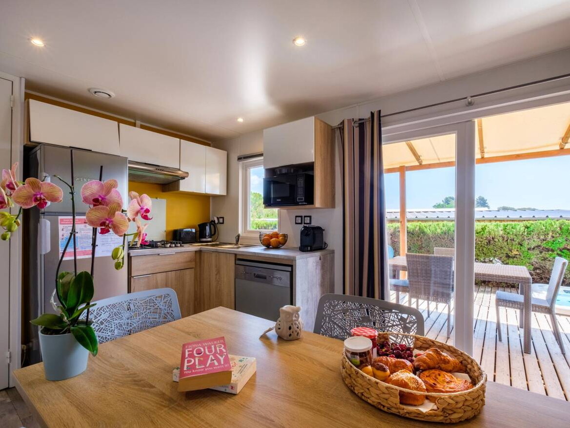 Či už sa návštevníci radi zúčastňujú na okúzľujúcej párty scéne, ktorou je Francúzska riviéra preslávená, alebo objavujú skryté poklady v mnohých malebných dedinkách regiónu, vzrušenie čaká na oboch. Pripojiť sa ku krásnym ľuďom, ktorí sa vyvaľujú na jemnom bielom piesku pláže a nasávajú lúče, vždy priťahuje dovolenkovú predstavivosť, ale po rezervácii mobilného domu v tomto luxusnom kempingu od VacanceSelect sa to stane rozkošnou realitou. Každý mobilný domček je plne vybavený, aby umožnil až 6 osobám luxusné útočisko po celodennej zábave, ako aj záhradný nábytok a ležadlá na úplné vychutnanie si pobytu vonku.