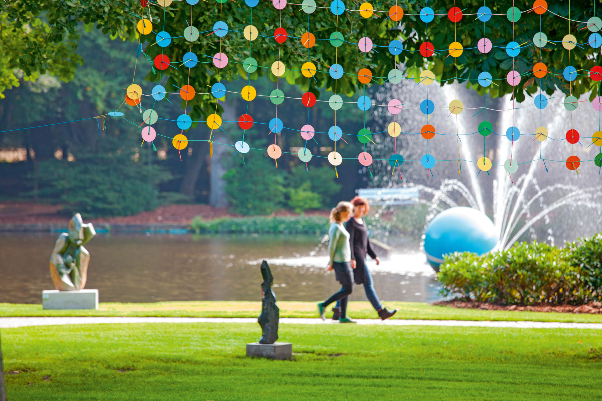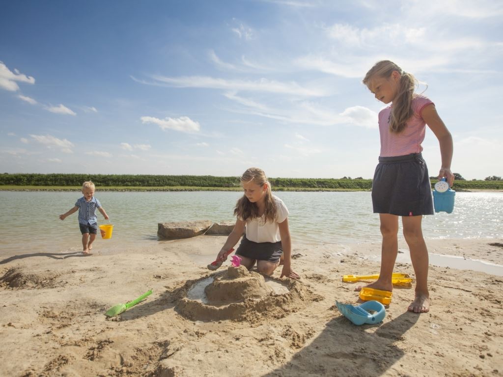Trávnik na opaľovanie a detské ihrisko pri jazere