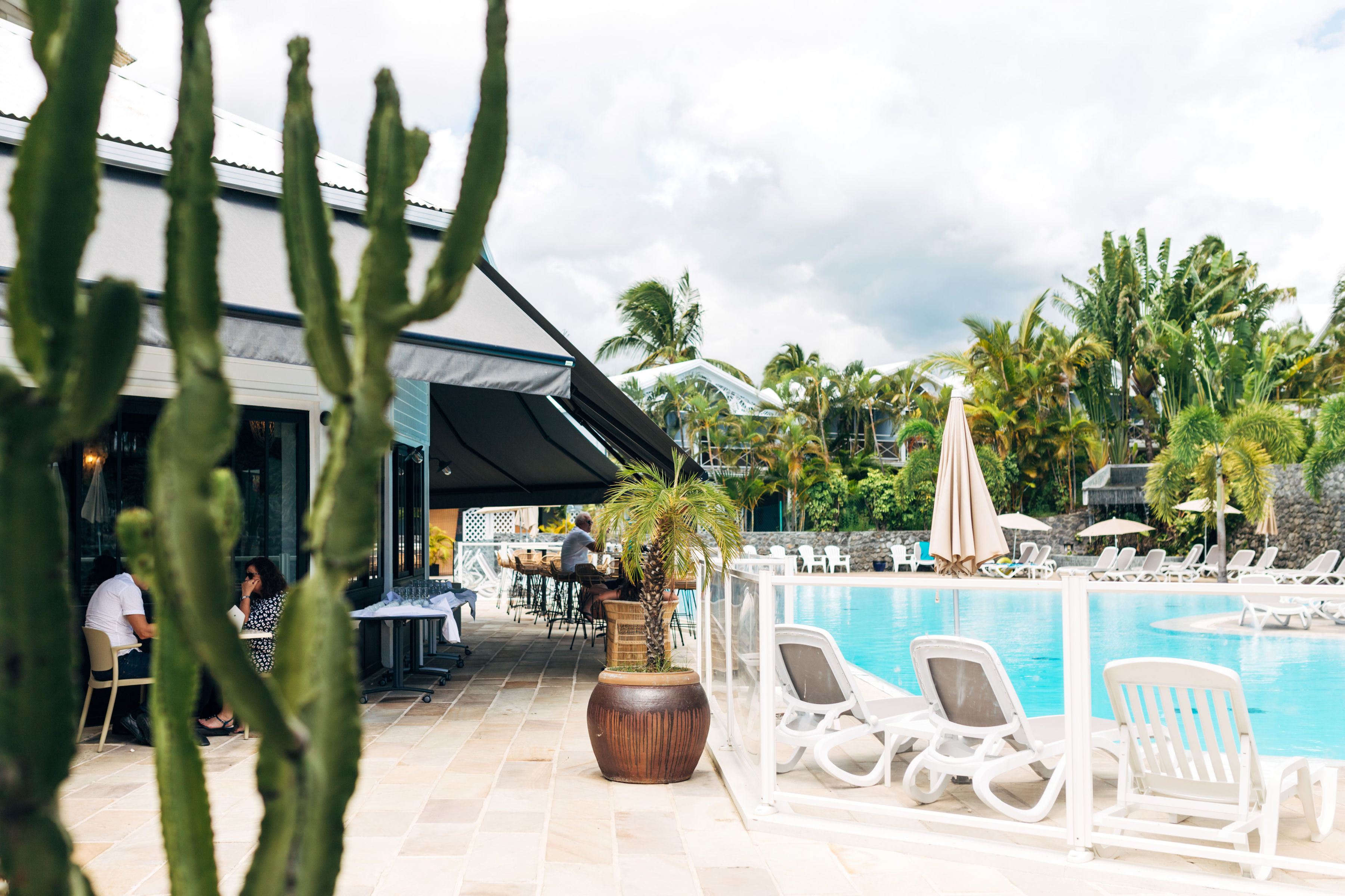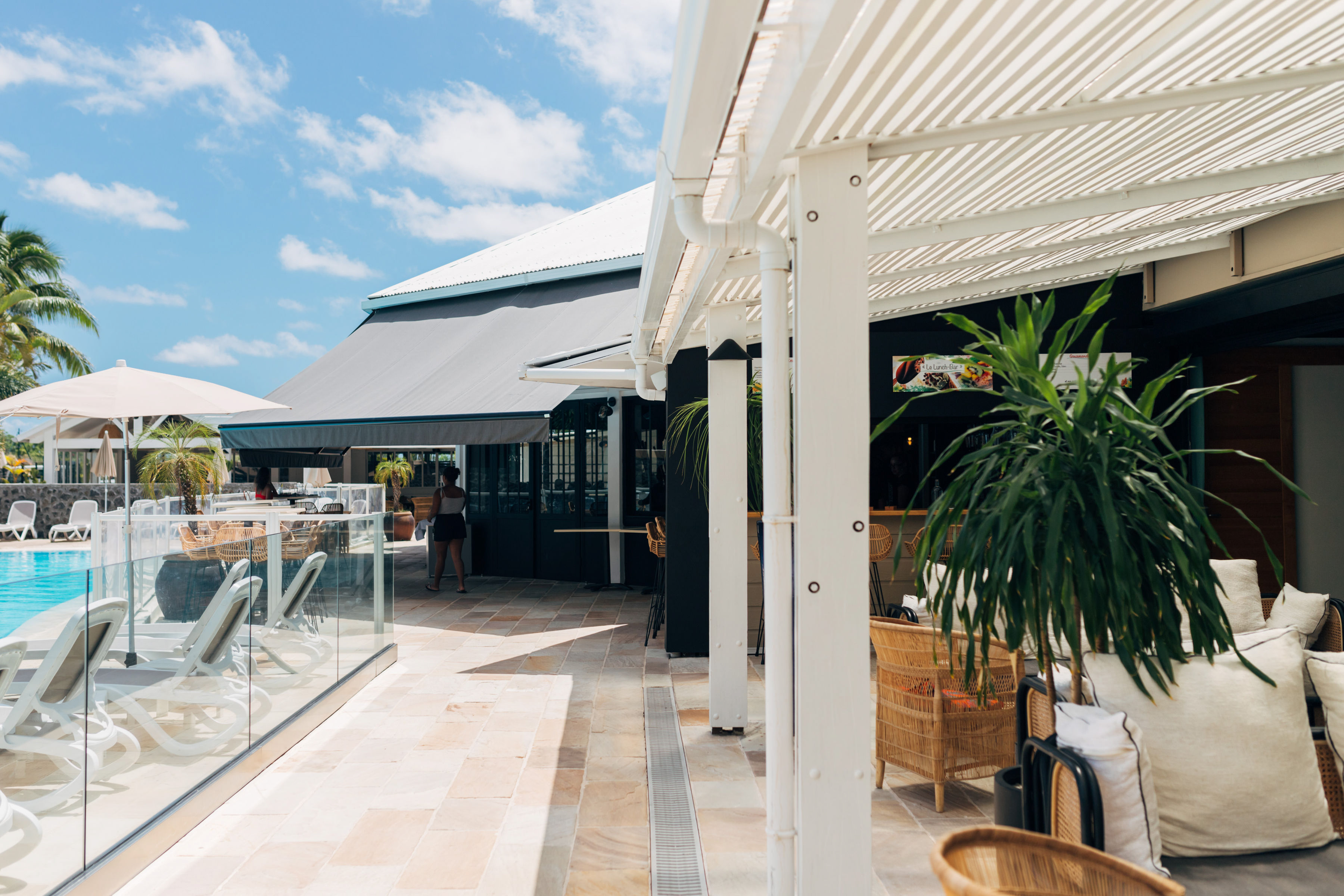 Útulný priestor pri bazéne