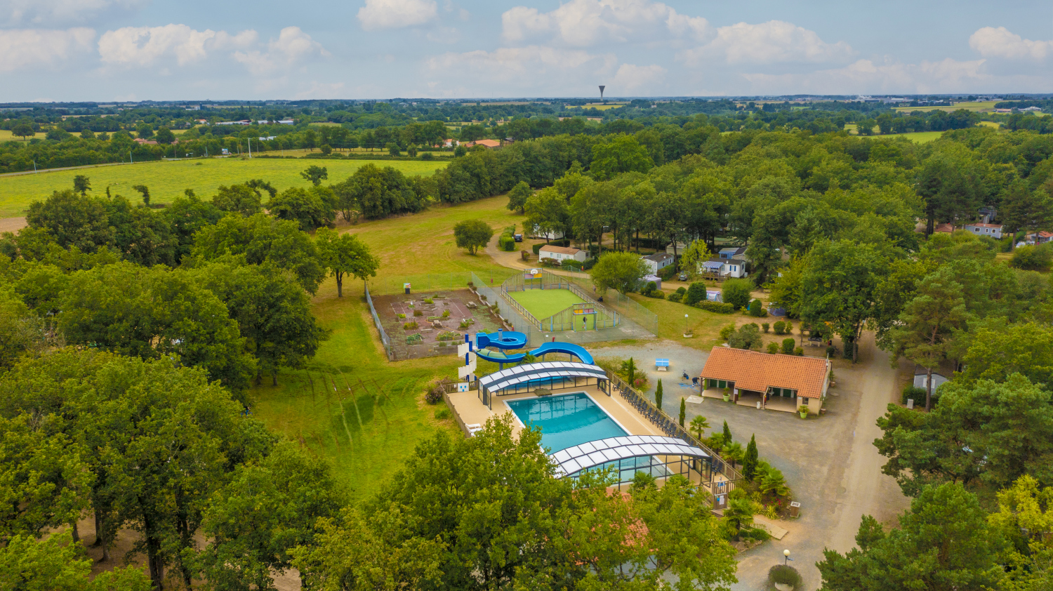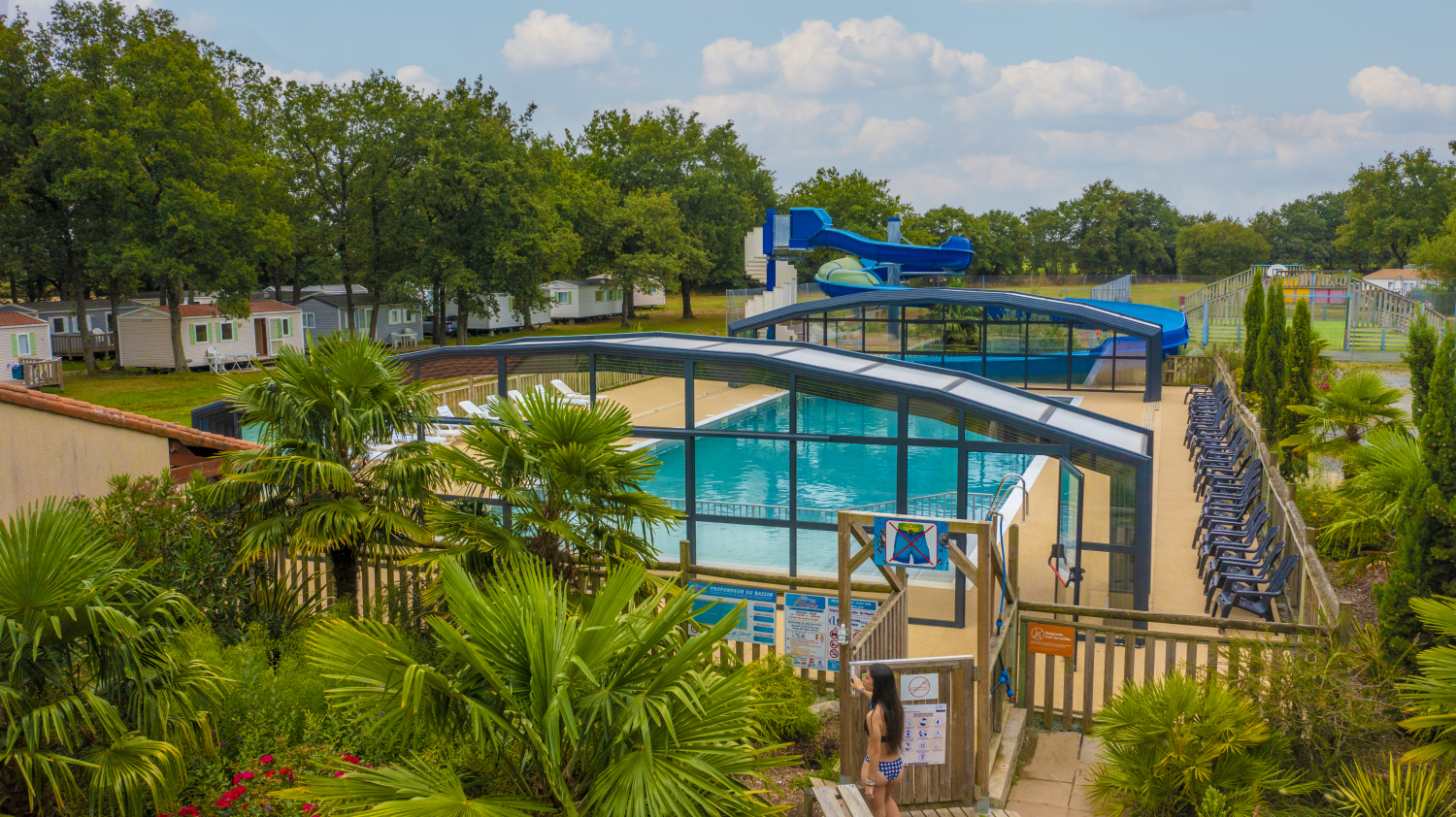 Covered swimming pool and water slides