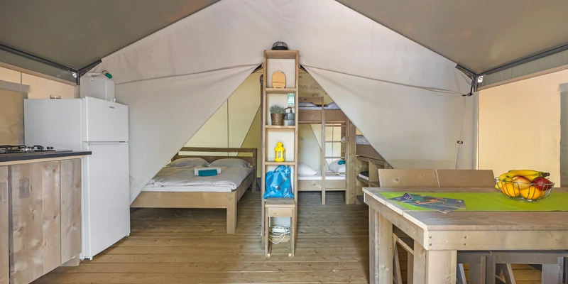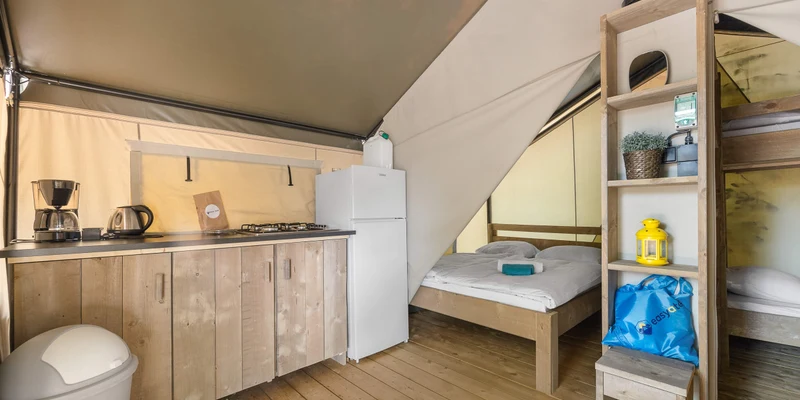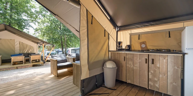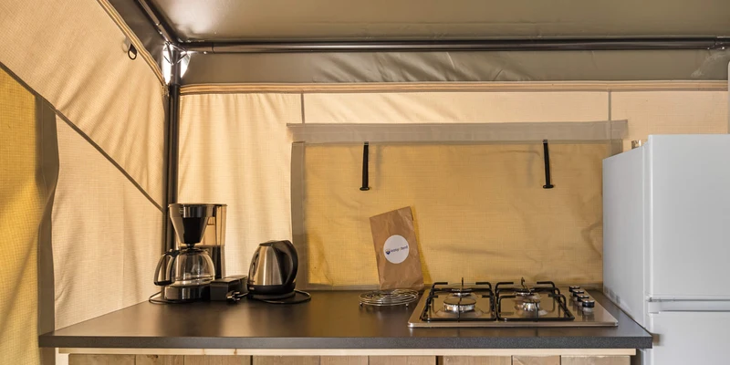 Spacious plots in the flourishing green camping host a variety of mobile homes. Each one comes equipped with a selection of essential amenities to ensure you have everything you need for the duration of your stay. For a true camping experience, the Glamptent provides guests with a unique and inviting place to reside.