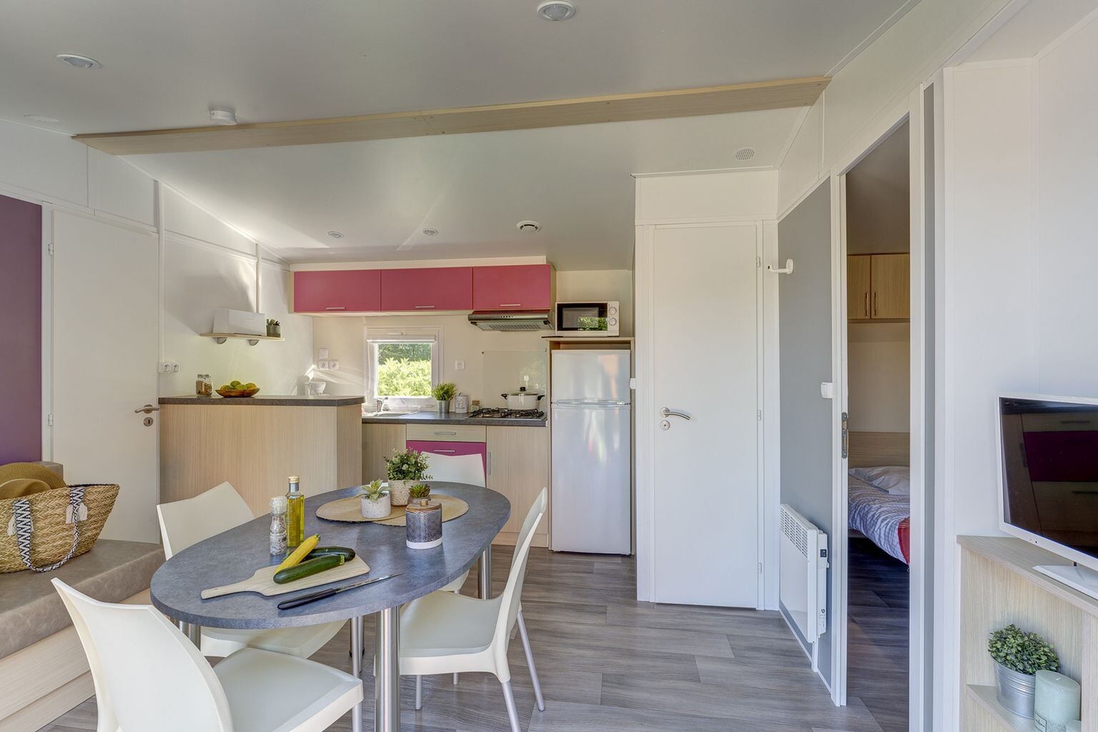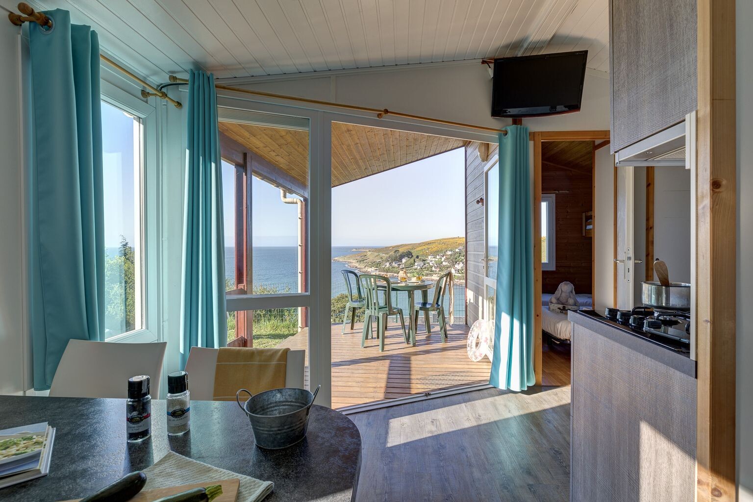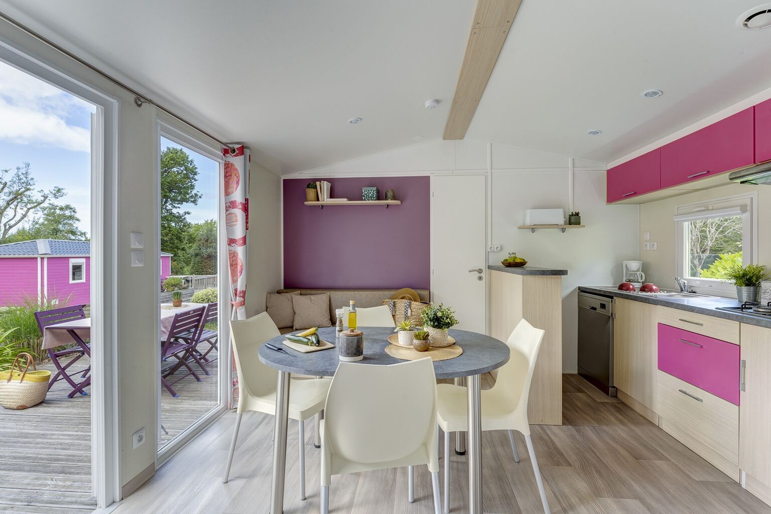 Our well-equipped and comfortable accommodation options are set in a green and serene environment. Choose the mobile home that best suits your needs. Take a seat on the terrace by your accommodation and enjoy a wonderful camping holiday at L'Anse Du Brick.