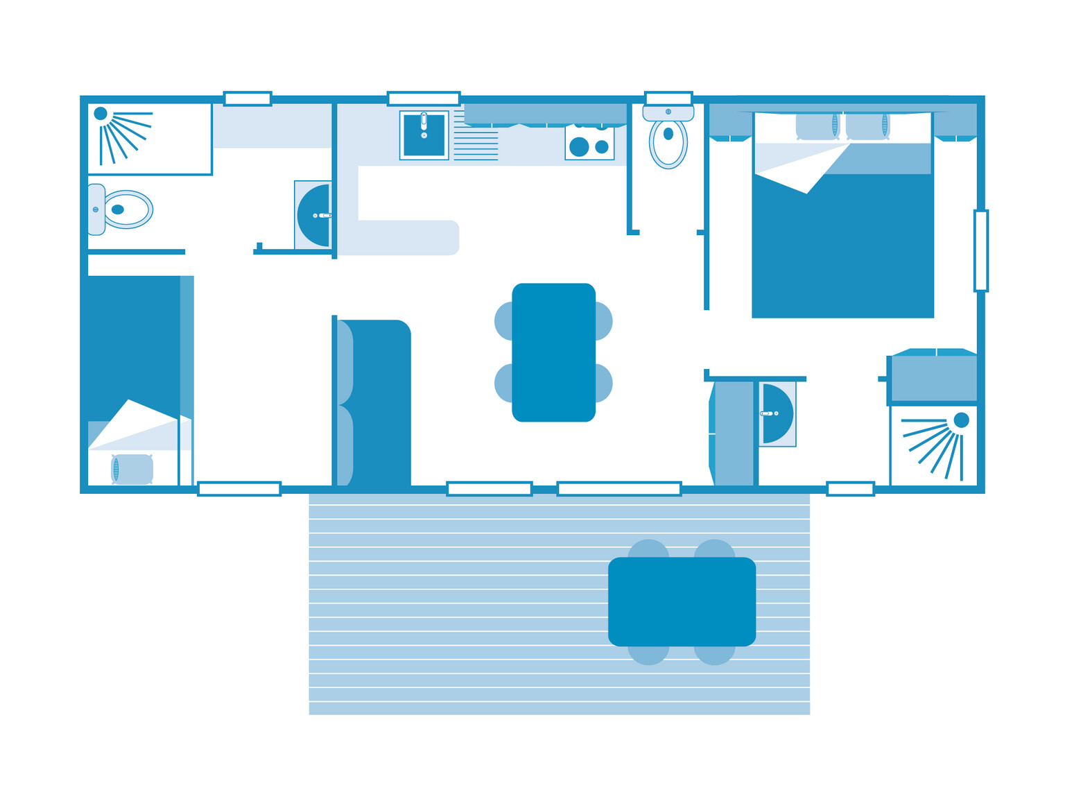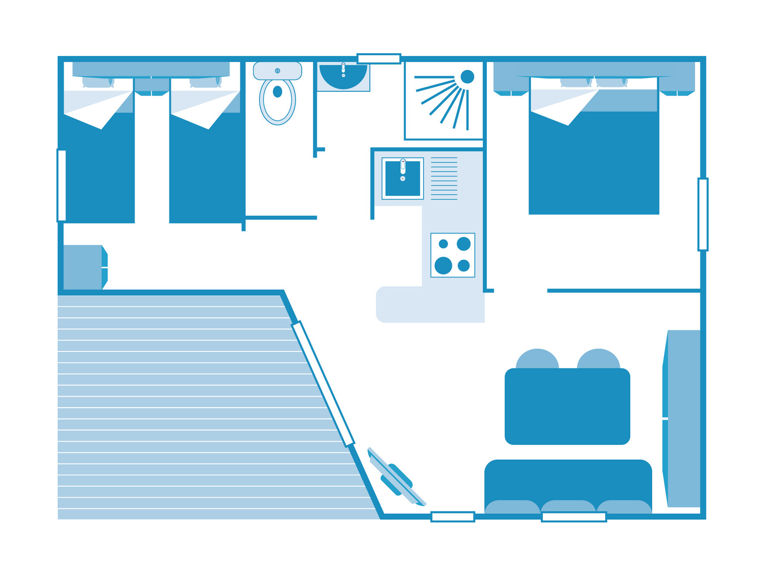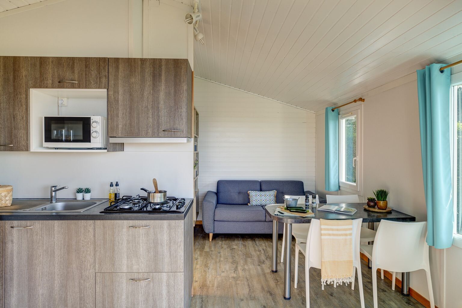 Our well-equipped and comfortable accommodation options are set in a green and serene environment. Choose the mobile home that best suits your needs. Take a seat on the terrace by your accommodation and enjoy a wonderful camping holiday at L'Anse Du Brick.