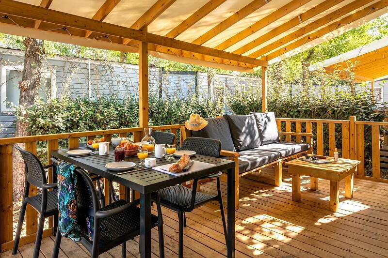 - Wooden terrace, partially or fully covered
