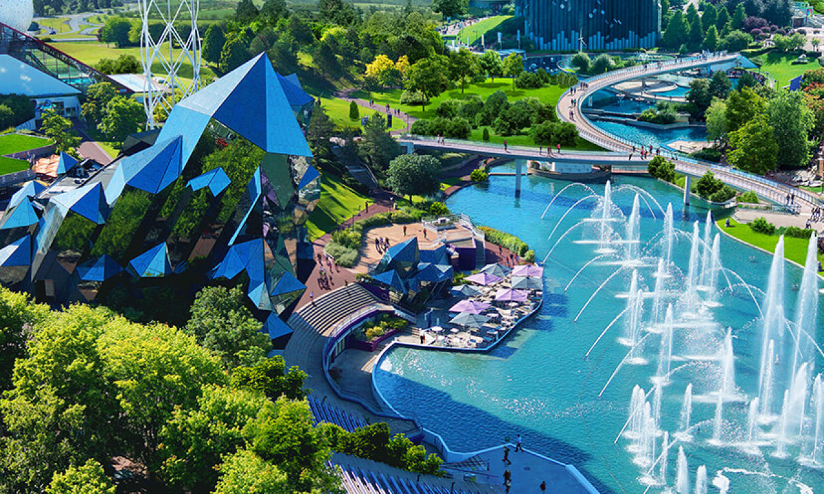 Large water park with slides